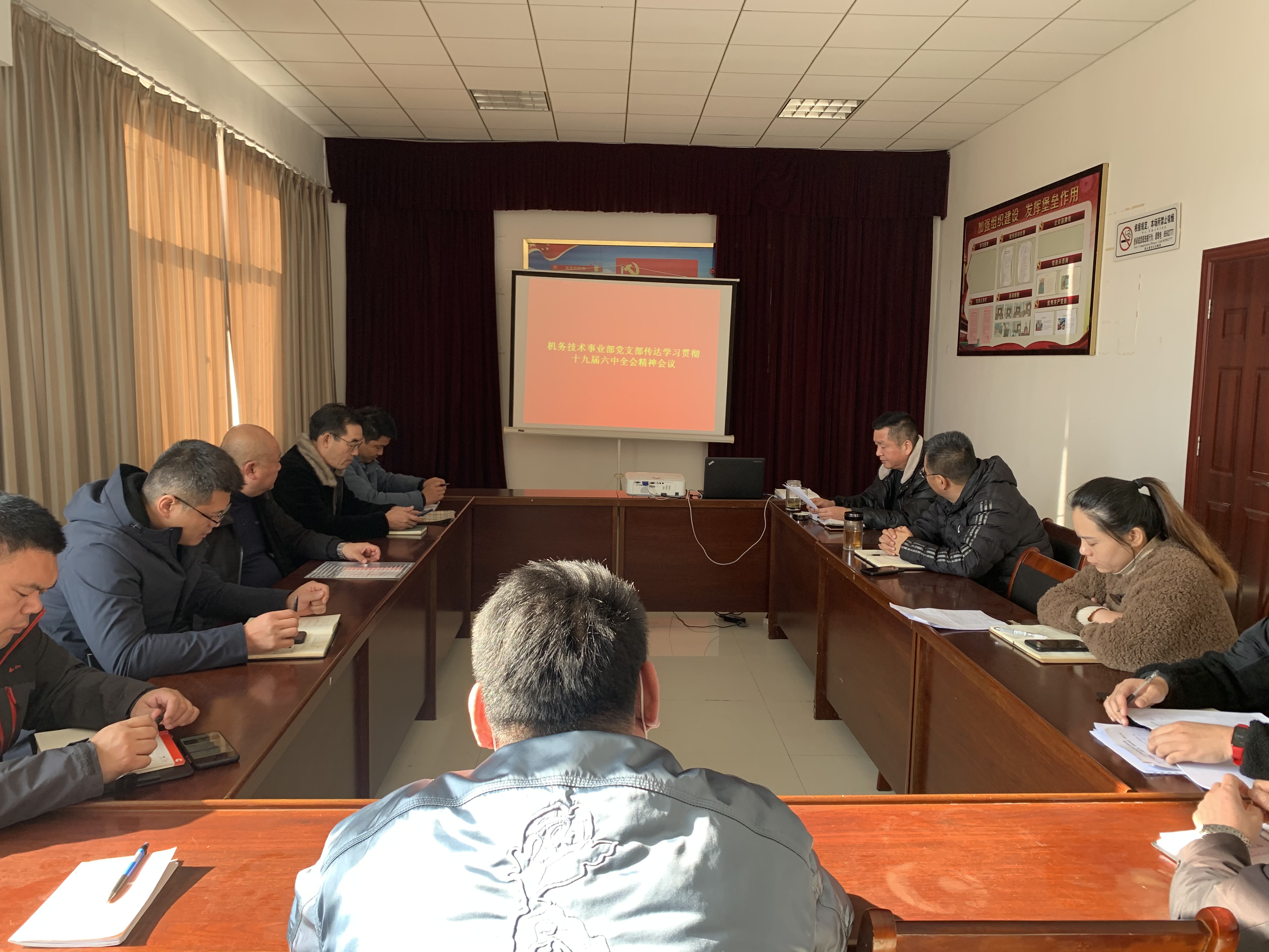 11月24日,机务技术事业部党支部召开专题会议,传达学习党的十九届六中全会精神,会议由党支部书记许增磊主持,全体党员参加。