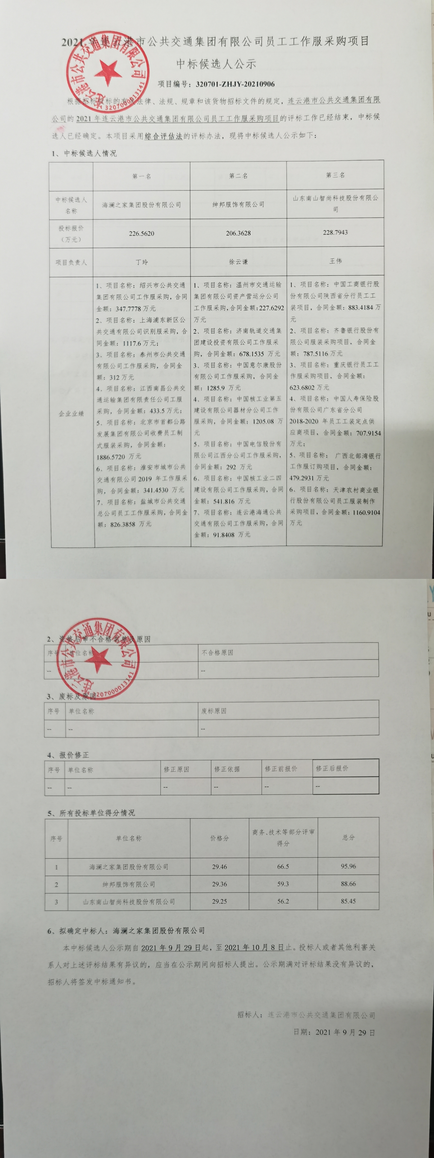 7、项目名称:连云港海通公共交通有限公司工作服采购,合同金额:91.8408 万元