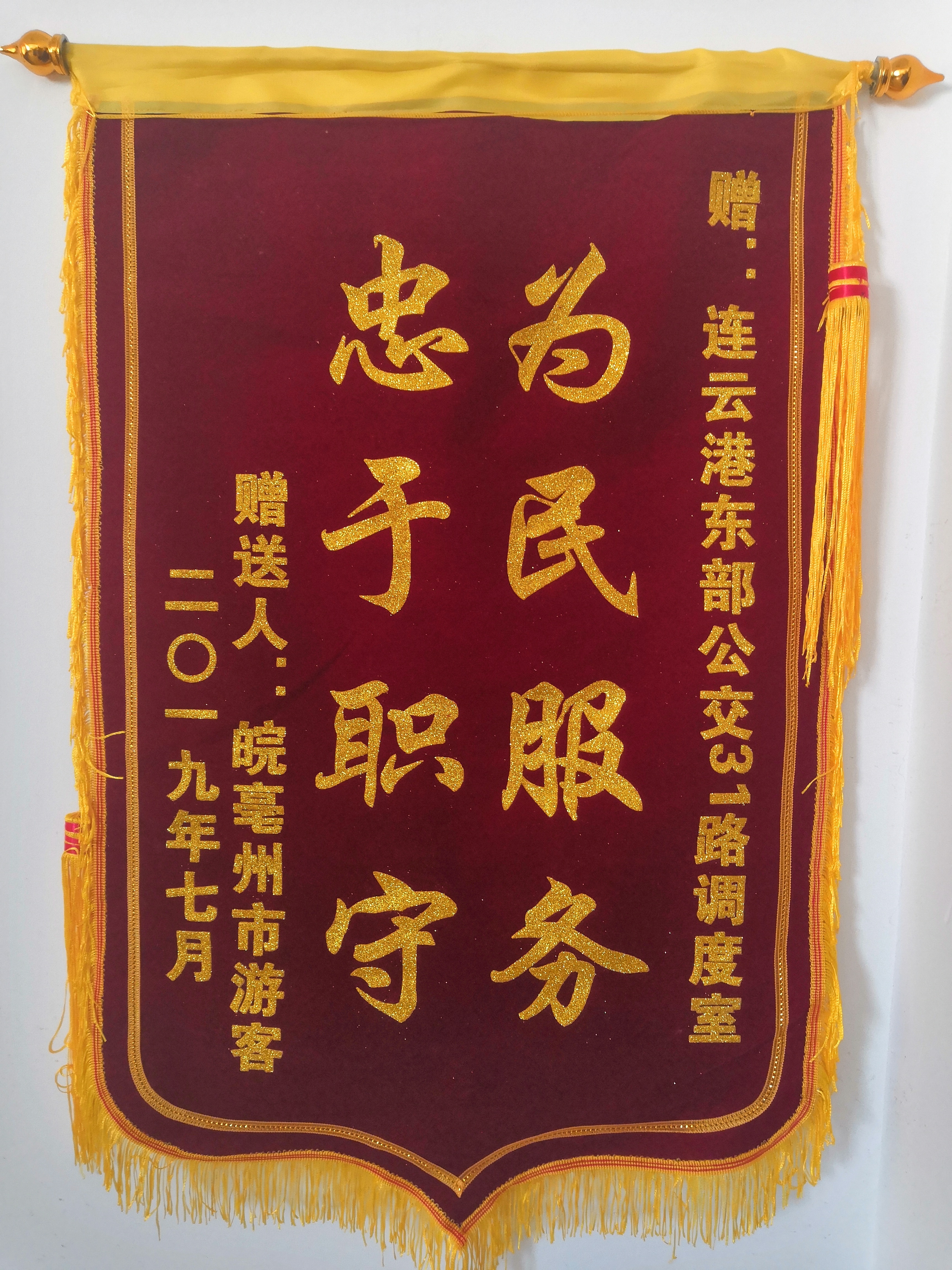 “请问你们谁是刘港队长,有他的快递……”7月27日下午,公交集团公交事业二部园丁小区调度室收到一份包装细长的快递,拿到快递的那一刻,刘港感到非常诧异,心里直嘀咕“最近没有买东西呀”,他急忙打开,里面是安徽亳州市的游客为园丁小区调度室寄来的感谢信和锦旗。