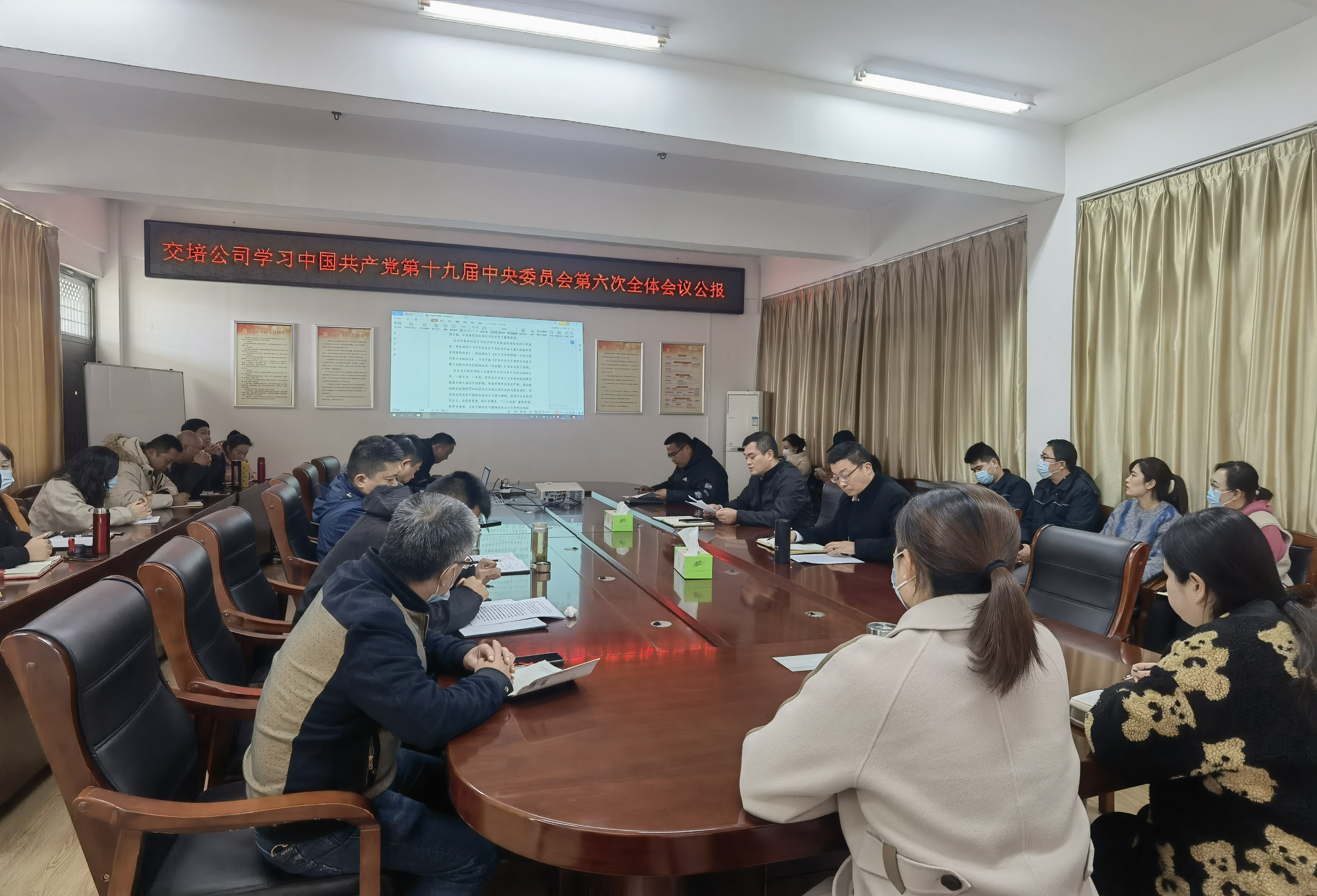 11月12日下午,交培公司召开传达、学习贯彻党的十九届六中全会精神会议。会议由公司党委书记、总经理杨维洲主持。