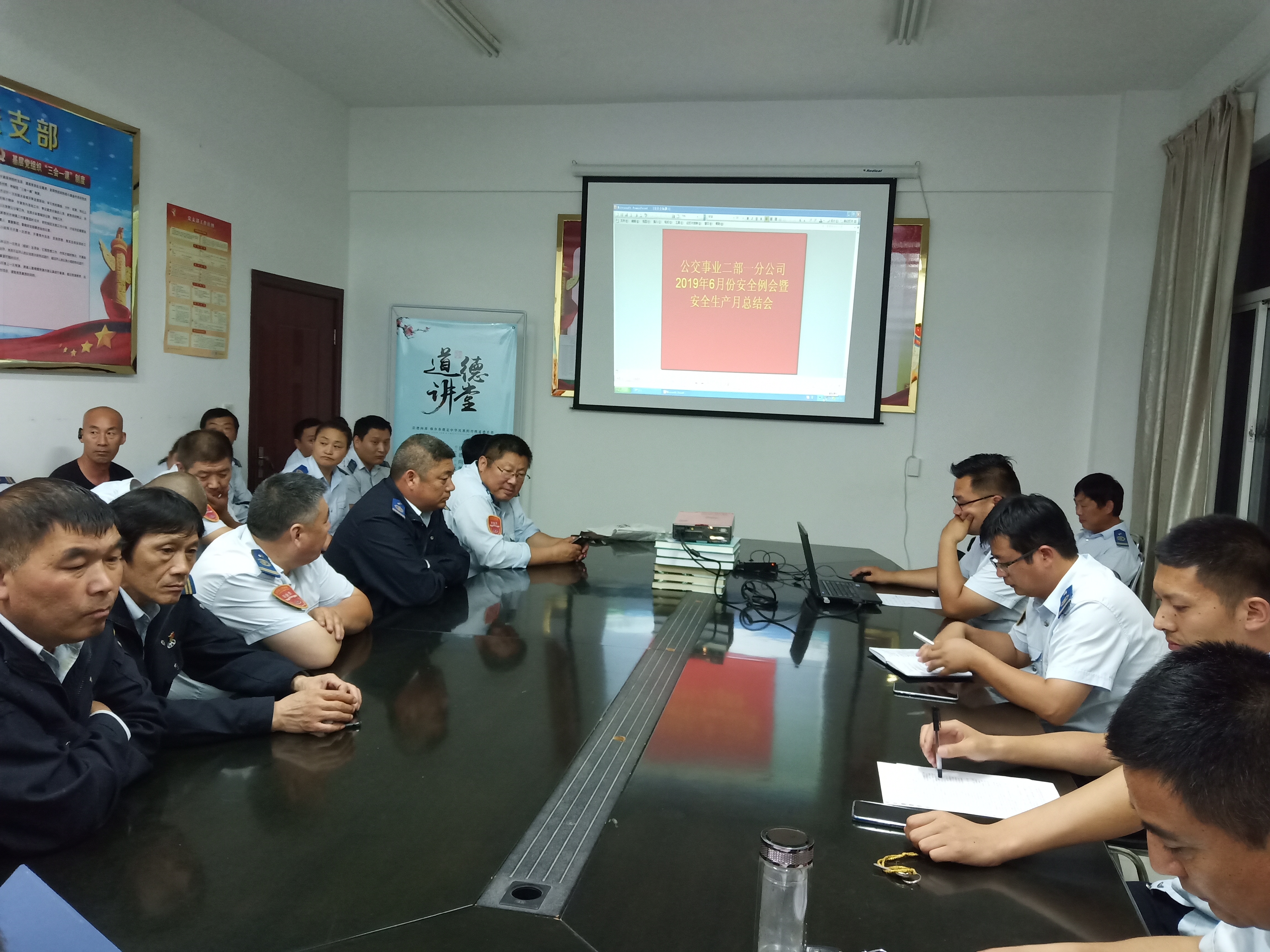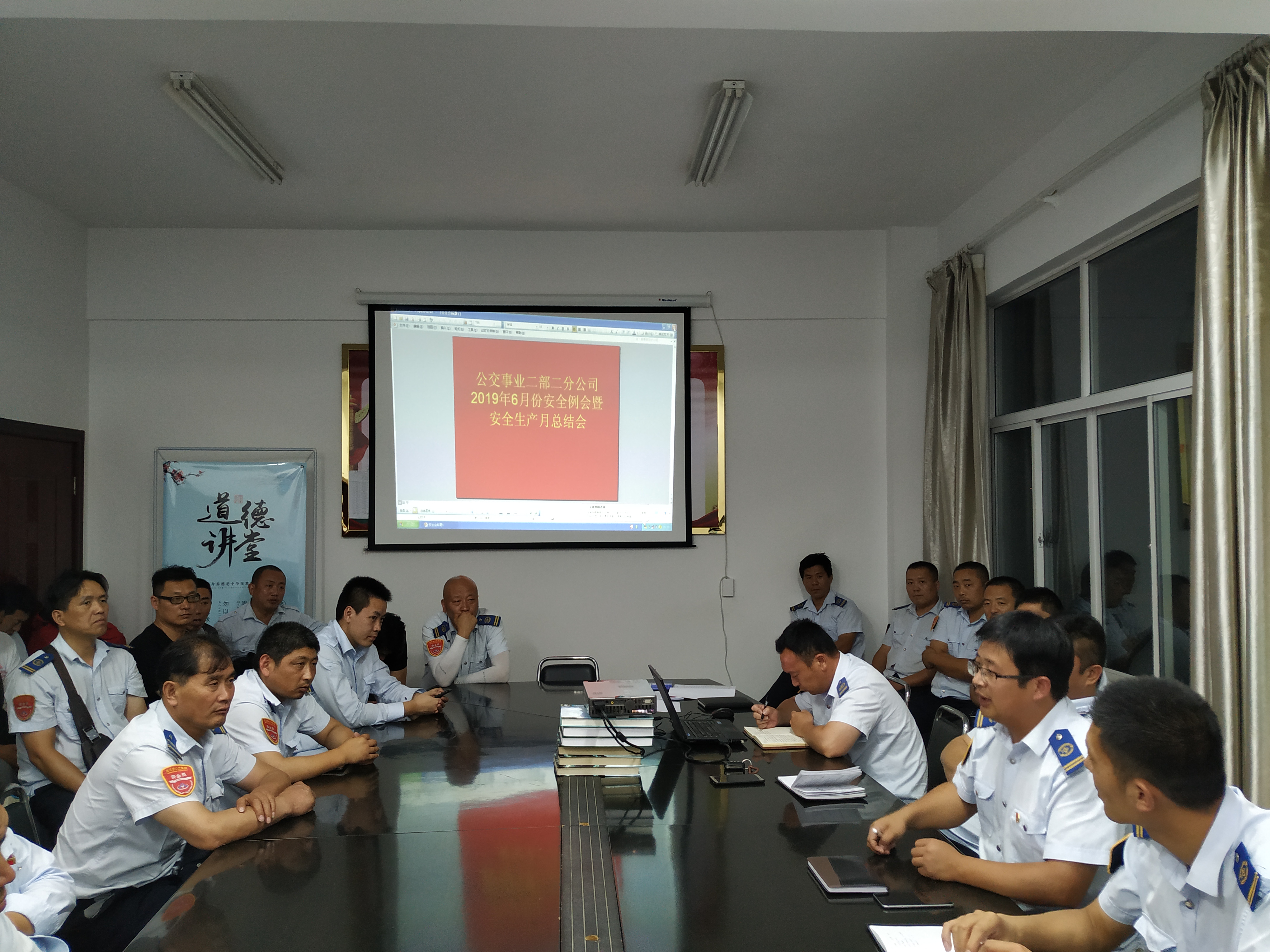 6月26日—6月27日晚,公交集团公交事业二部利用驾驶员安全生产例会,召开2019年安全生产月总结会,安全管理人员及全体驾驶员参加会议。