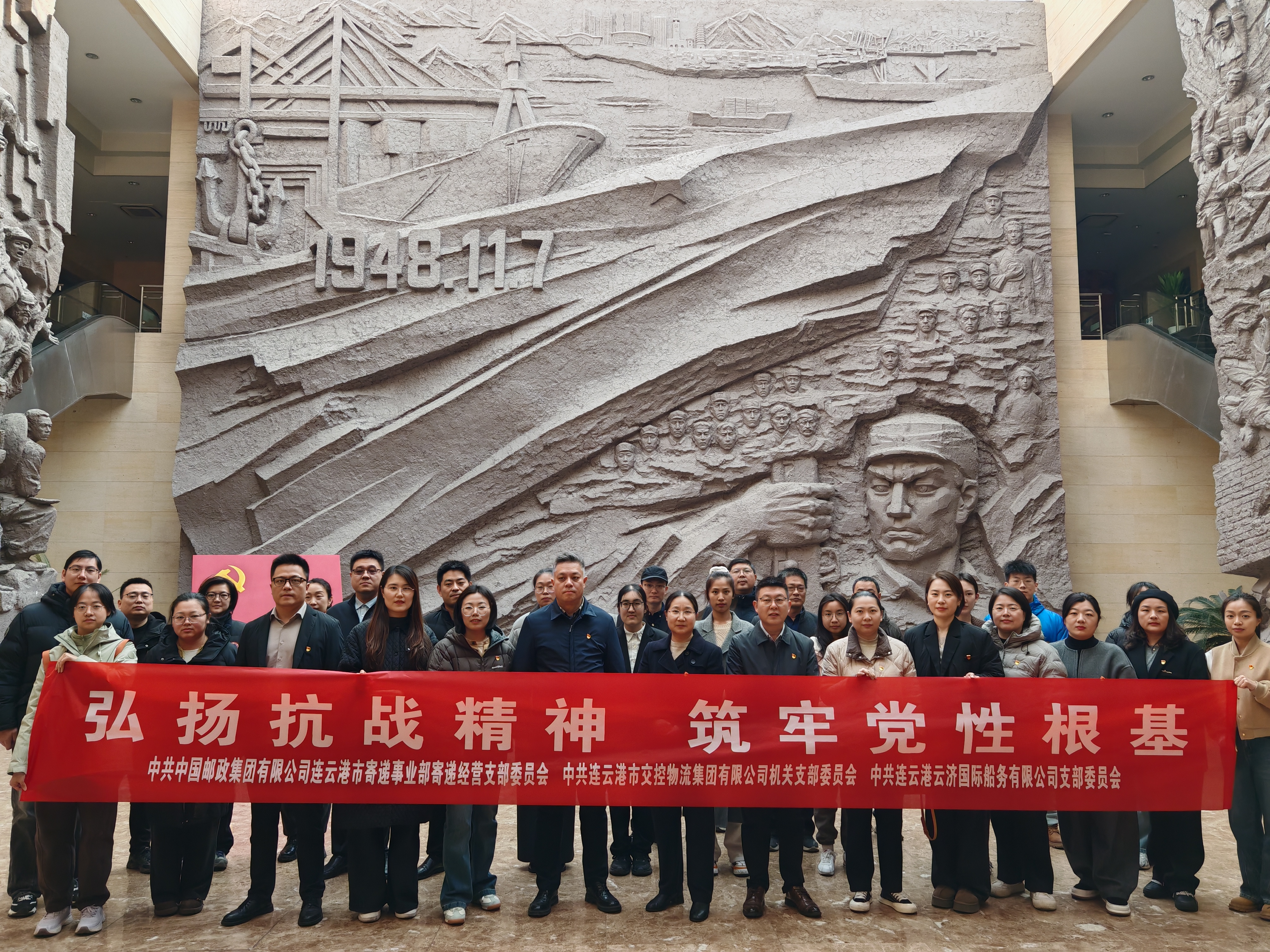 为进一步激发党员领导干部的爱国热情与奋斗精神,积极探索创新党建工作,以高质量党建引领高质量发展。近日,连云港市交控物流集团有限公司机关党支部、连云港云济国际船务有限公司党支部、中国邮政集团有限公司连云港市寄递事业部寄递经营党支部联合开展党建共建主题党日活动。