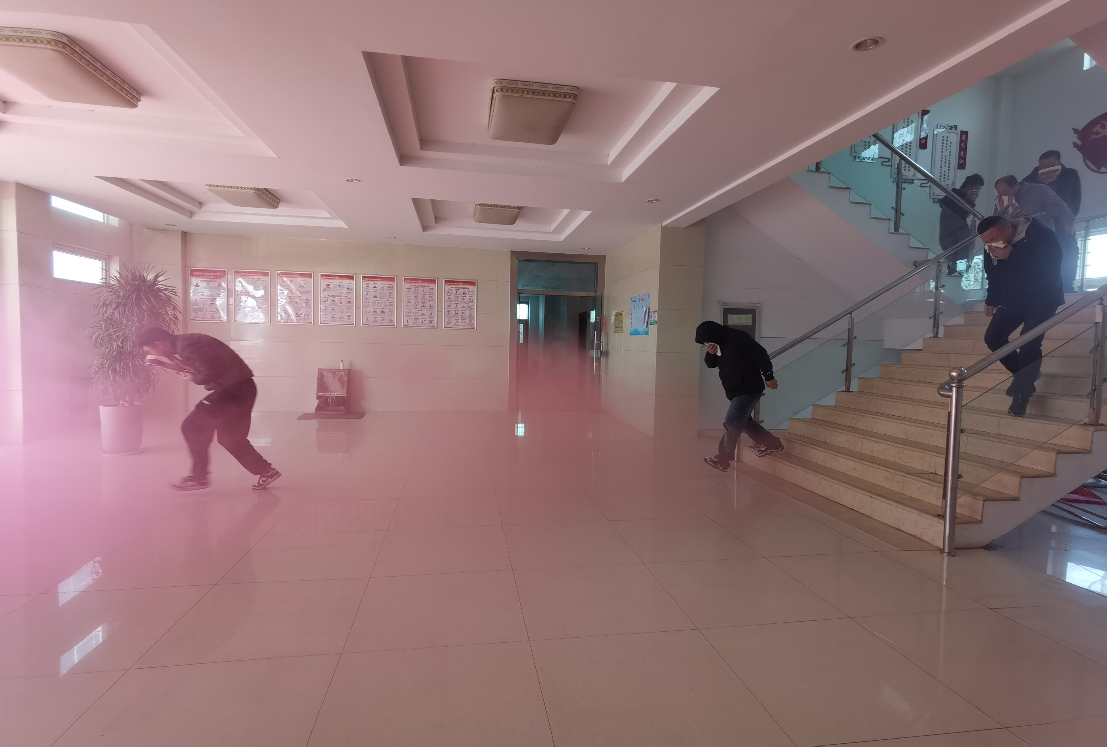 整个演练过程紧张有序、环环相扣,各环节衔接流畅。在短短几分钟内,办公楼内所有人员全部安全有序撤离至指定安全集结点,经清点确认全员安全。演练结束后,现场还开展消防技能培训,由专业人员详细讲解灭火器、防毒面具等消防设施设备的使用方法,参演人员逐一进行实际操作体验。