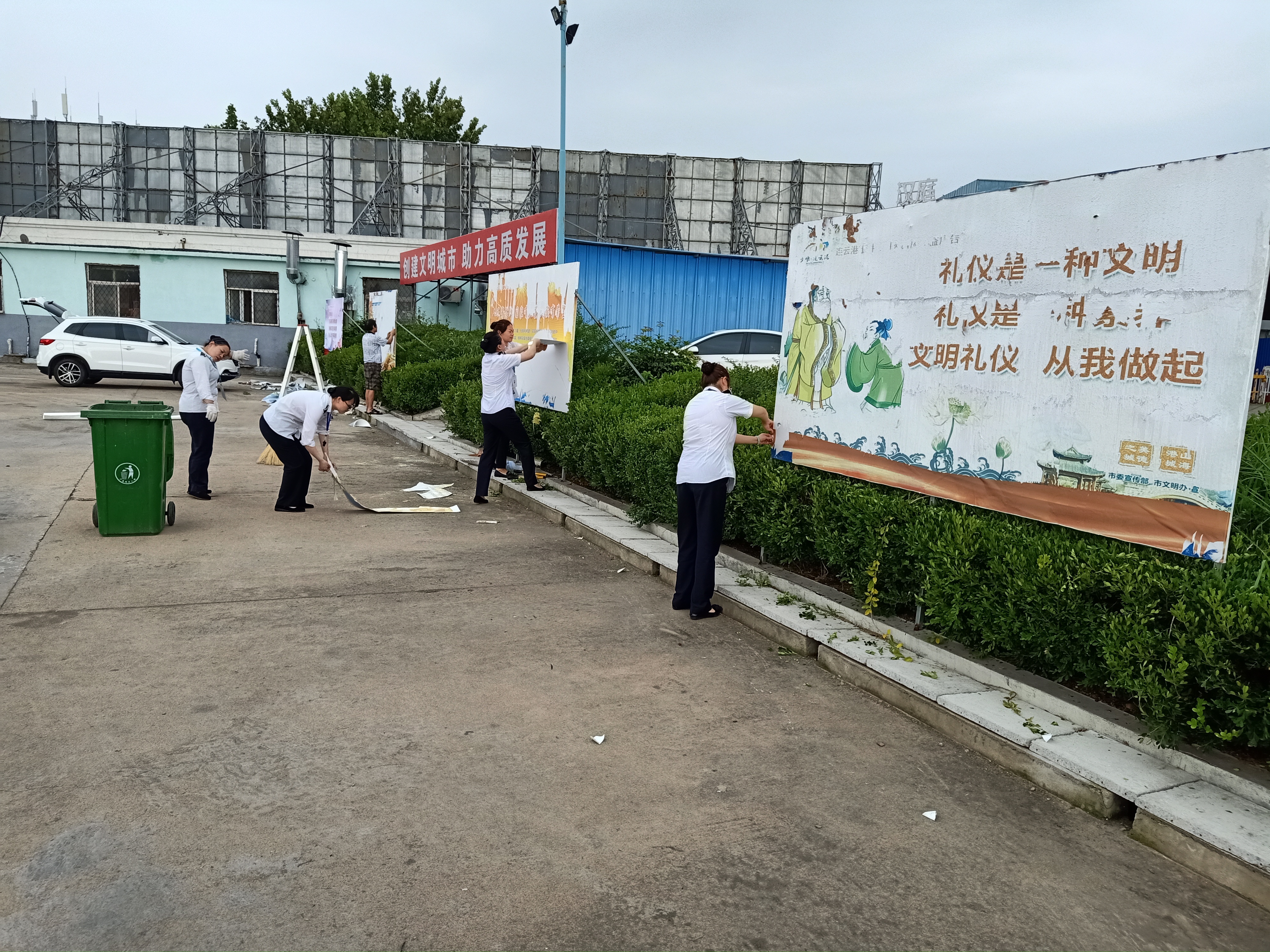 为进一步落实好创文长效机制,8月16日,赣榆公司创文工作领导小组对站内及周边的公益广告进行了全面检查,对破损的公益广告进行了及时更换。