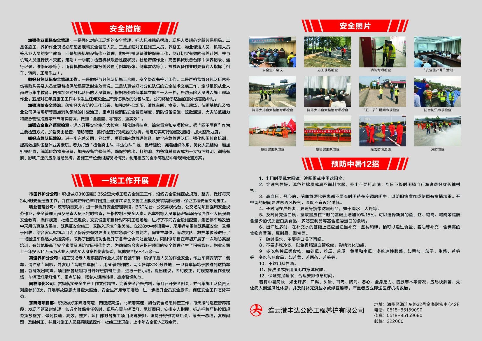 为进一步宣传落实安全生产法律法规和集团安全生产要求,树立安全第一思想,丰达公司根据安全生产实际情况,编制安全生产简报。简报包含安全生产重点工作和一线工作情况以及安全知识等六项内容。