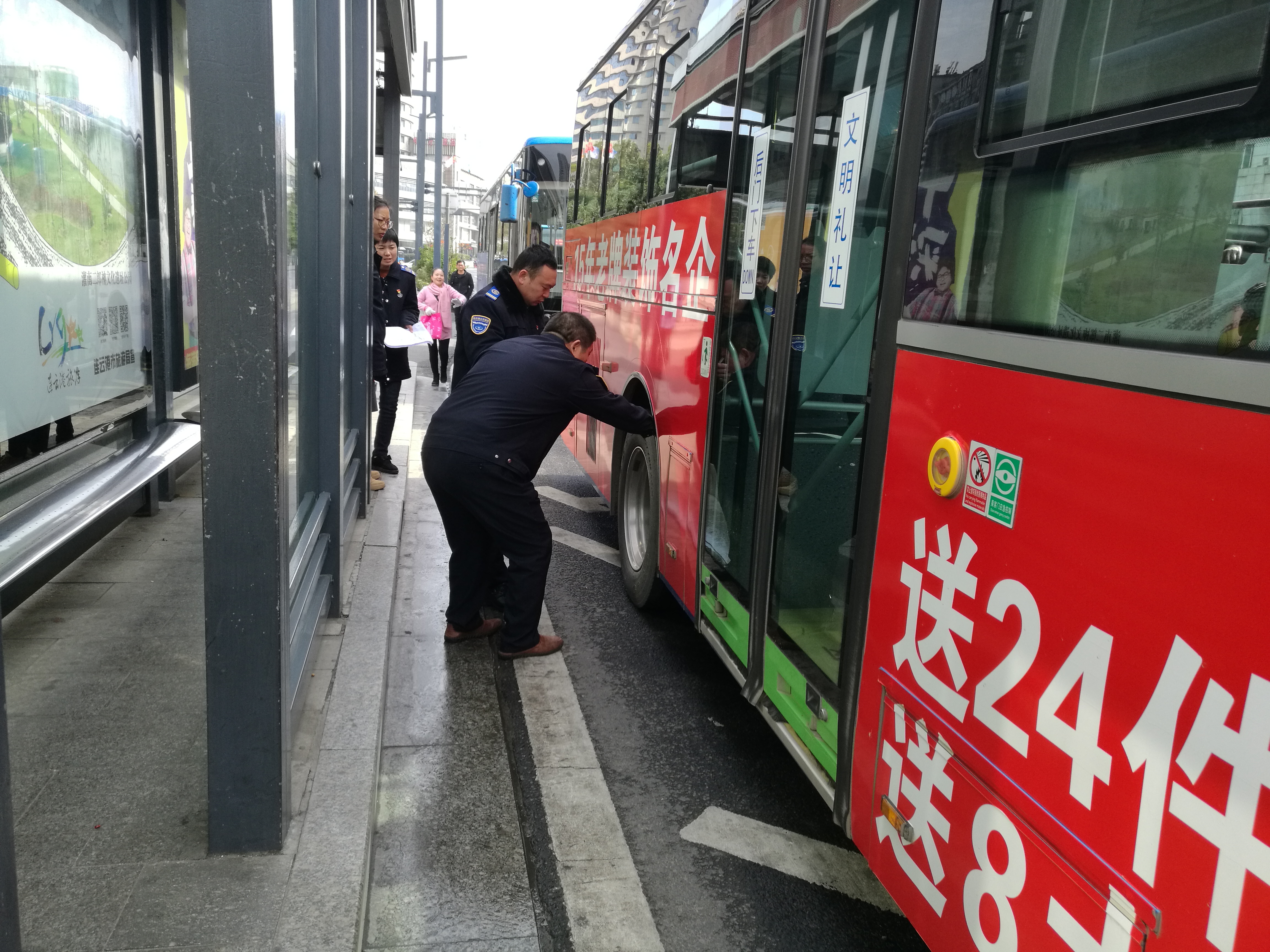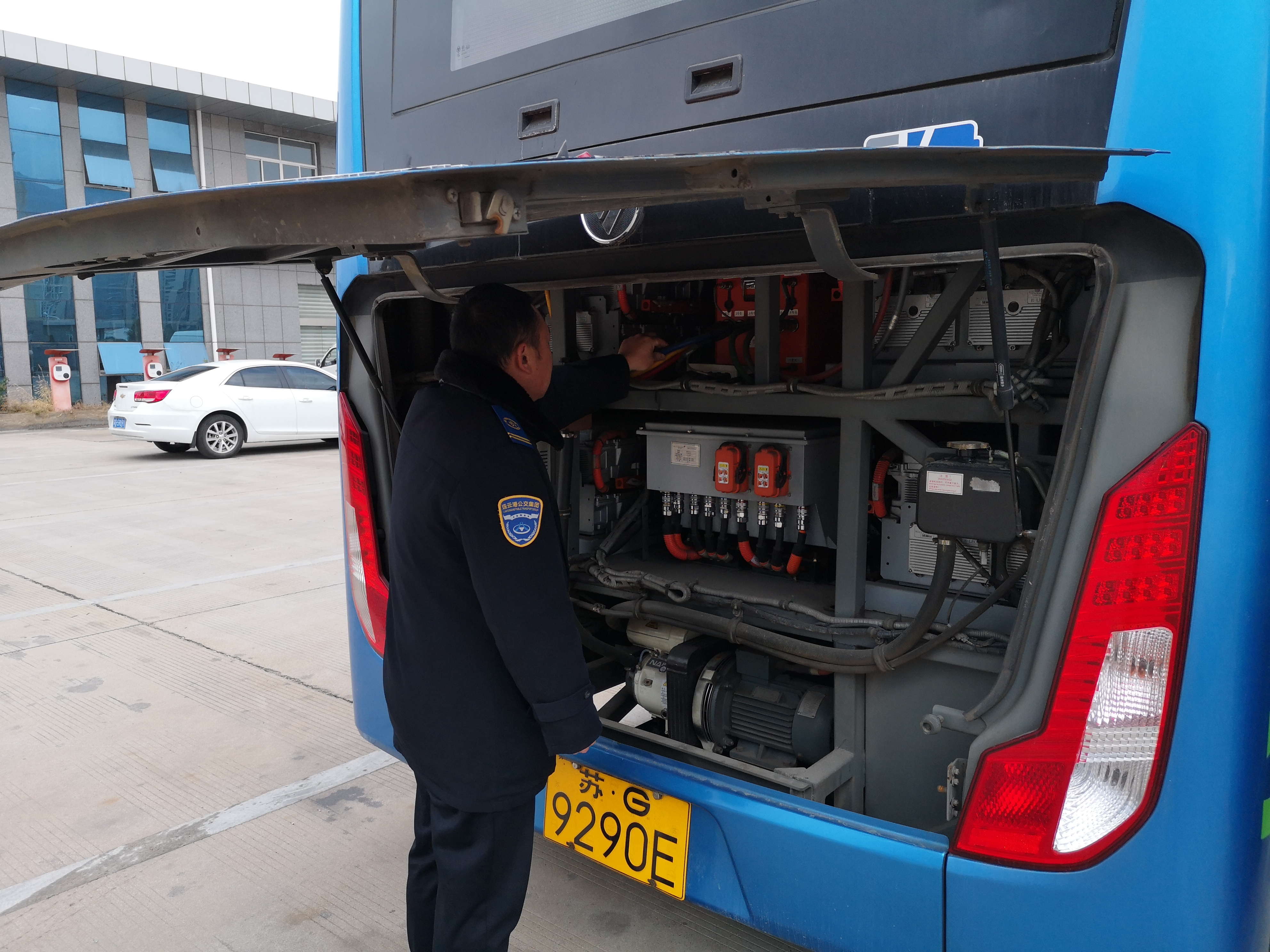 此次检查由公司支部书记、经理王浩带领机务技术科工作人员分别对公交总站、园丁小区公交场站、海滨大道首末站、连云古镇的车辆进行全面检查。此次主要检查灭火器、安全锤等车内安全设施是否完好,查看车辆的空调、电路、油路、灯光、转向、自动系统、胎压、发动机舱电池舱等是否存在安全隐患。同时,检查人员在重要站点检查驾驶员操作情况,要求驾驶员认真做好 “一日三检”工作,在运营过程中路口不要超速,不抢黄闪,不闯红灯,规范操作,节约能耗,车辆发生故障要及时与机务员联系和报修。