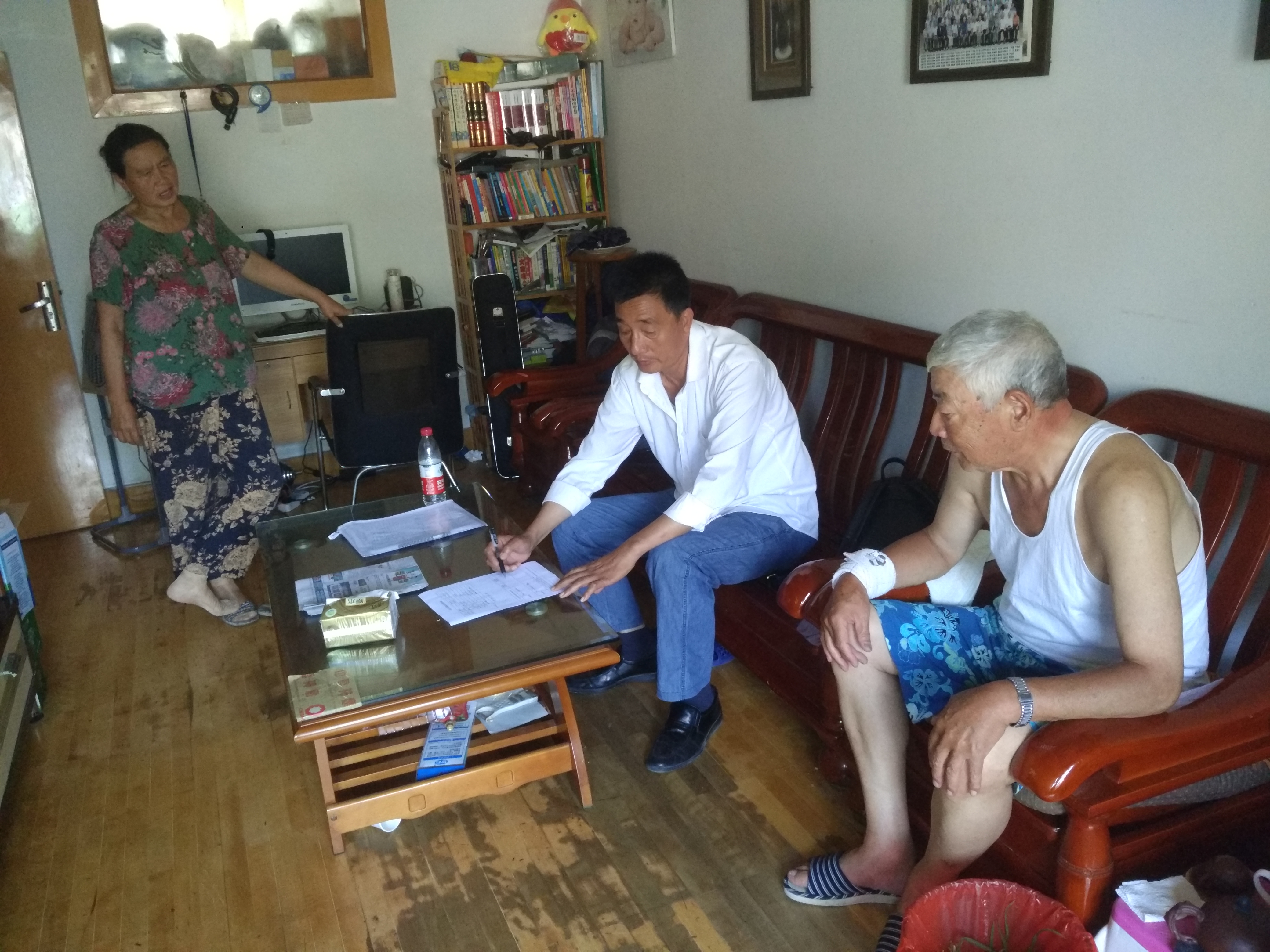 居住在新西社区棉织厂宿舍楼的原棉织厂厂长郑锦春老人,今年已79岁高龄,这位人老心未老的老党员,为党工作、为社区服务的热情深深地感染着走访人员。他顶着烈日,不畏酷暑,带着走访人员逐户走访,讲述社区居民实际情况,为公司开展调研走访工作提供了很大的帮助。各单位党员干部、入党积极分子冒着高温,挥汗如雨地坚持在走访第一线,他们的辛苦付出也得到了广大走访户的理解和认可。为了第一时间全面掌握96户社区走访对象信息,有的队员主动放弃下班休息时间,多次走进新西社区,向走访户了解情况,正是有了这群不怕苦,不怕困难的党员干部,汽服公司在新西社区开展大走访工作才得以顺利推进。