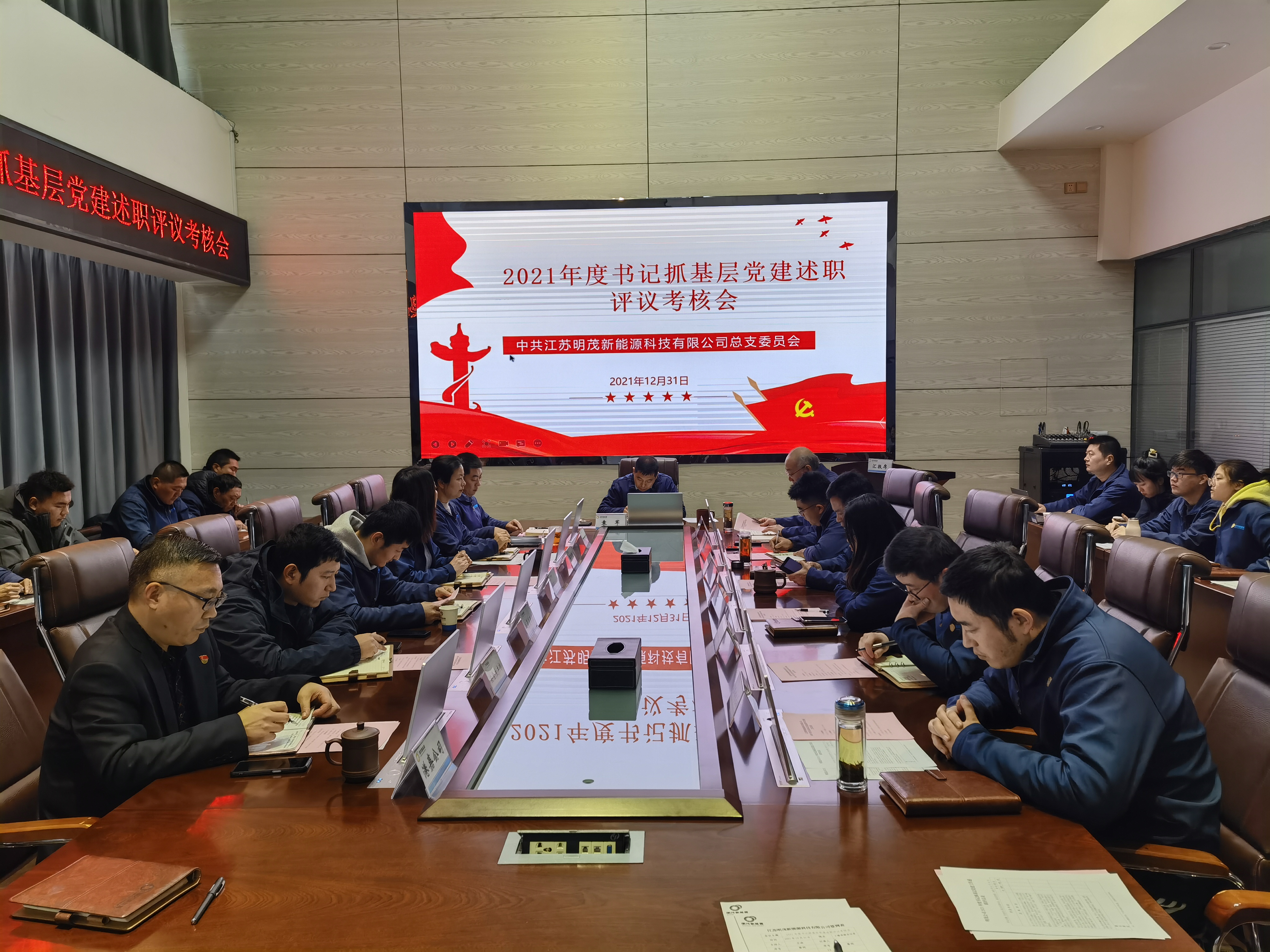 12月31日上午,明茂公司召开2021年度书记抓基层党建述职评议考核会议,公司领导班子、各部门负责人、班组长、机关工作人员代表、港嘉支部党员共计31人参加会议,会议由公司党总支副书记、工会主席王冰主持。