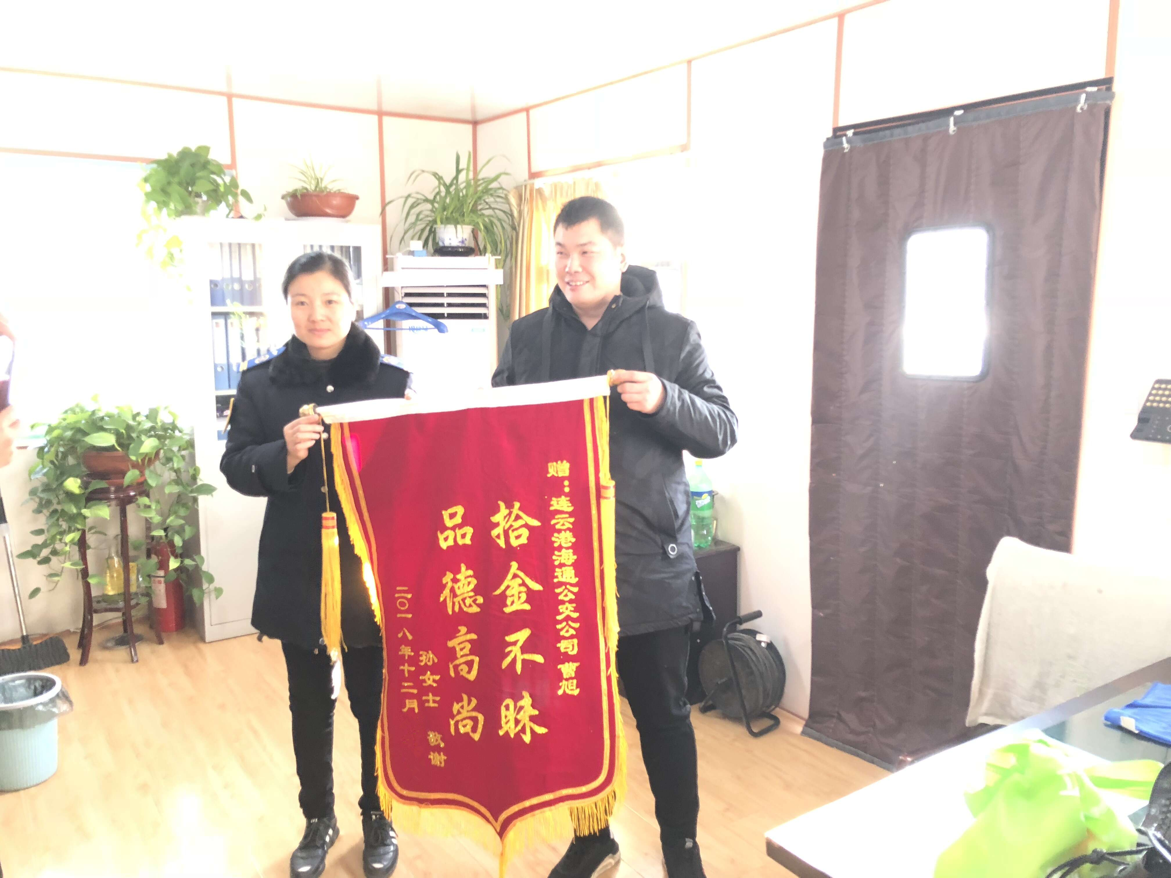 近日,公交集团公交事业一部办公室来了两位特殊的客人,他们替自己的姐姐送来了一面印有“拾金不昧、品德高尚”烫金大字的锦旗,表达对19路驾驶员曹旭师傅拾金不昧的感激之情。