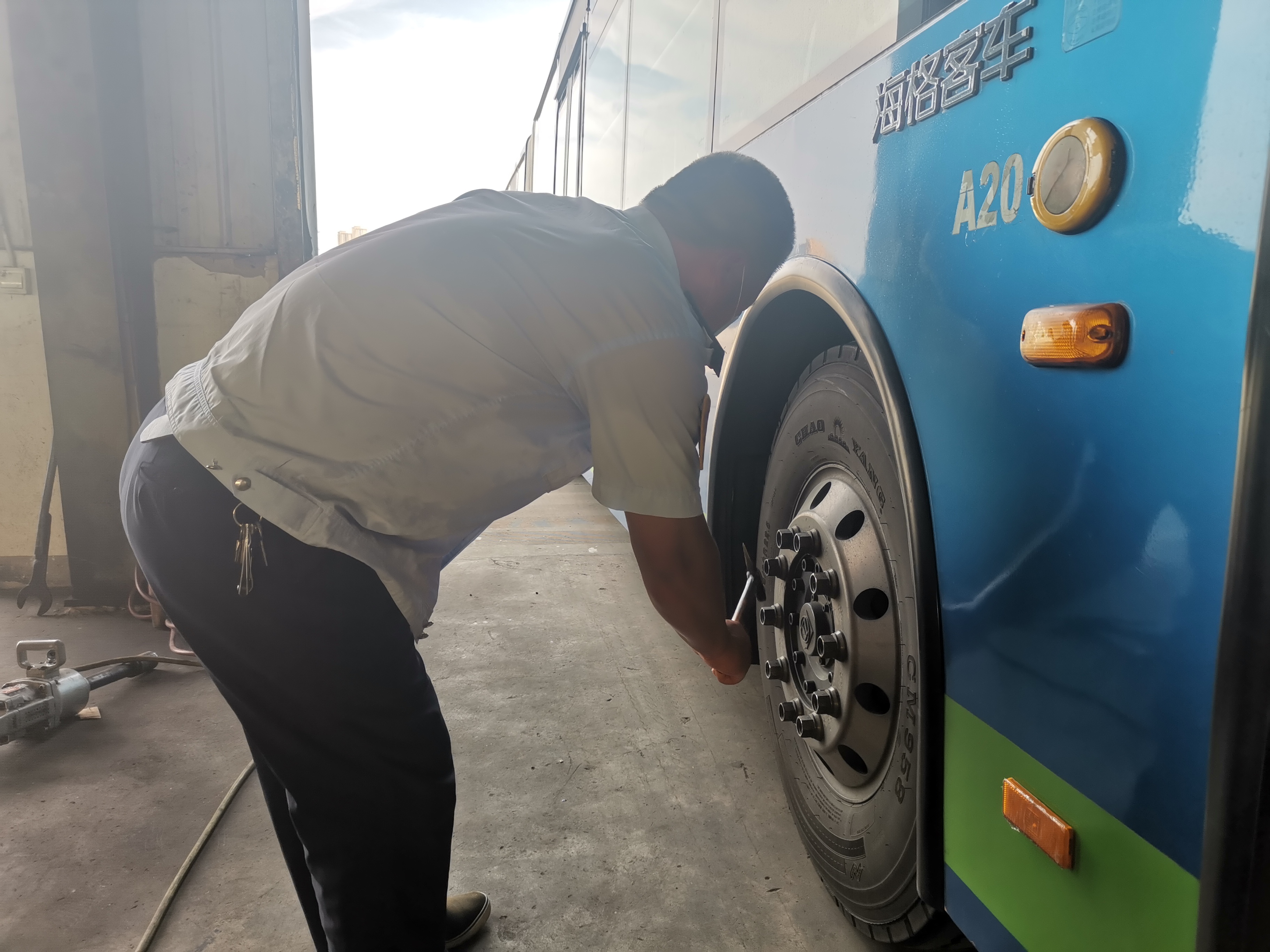 近日连续出现高温黄色预警,快速公交事业部针对近日高温天气,对车辆轮胎开展专项检查。
