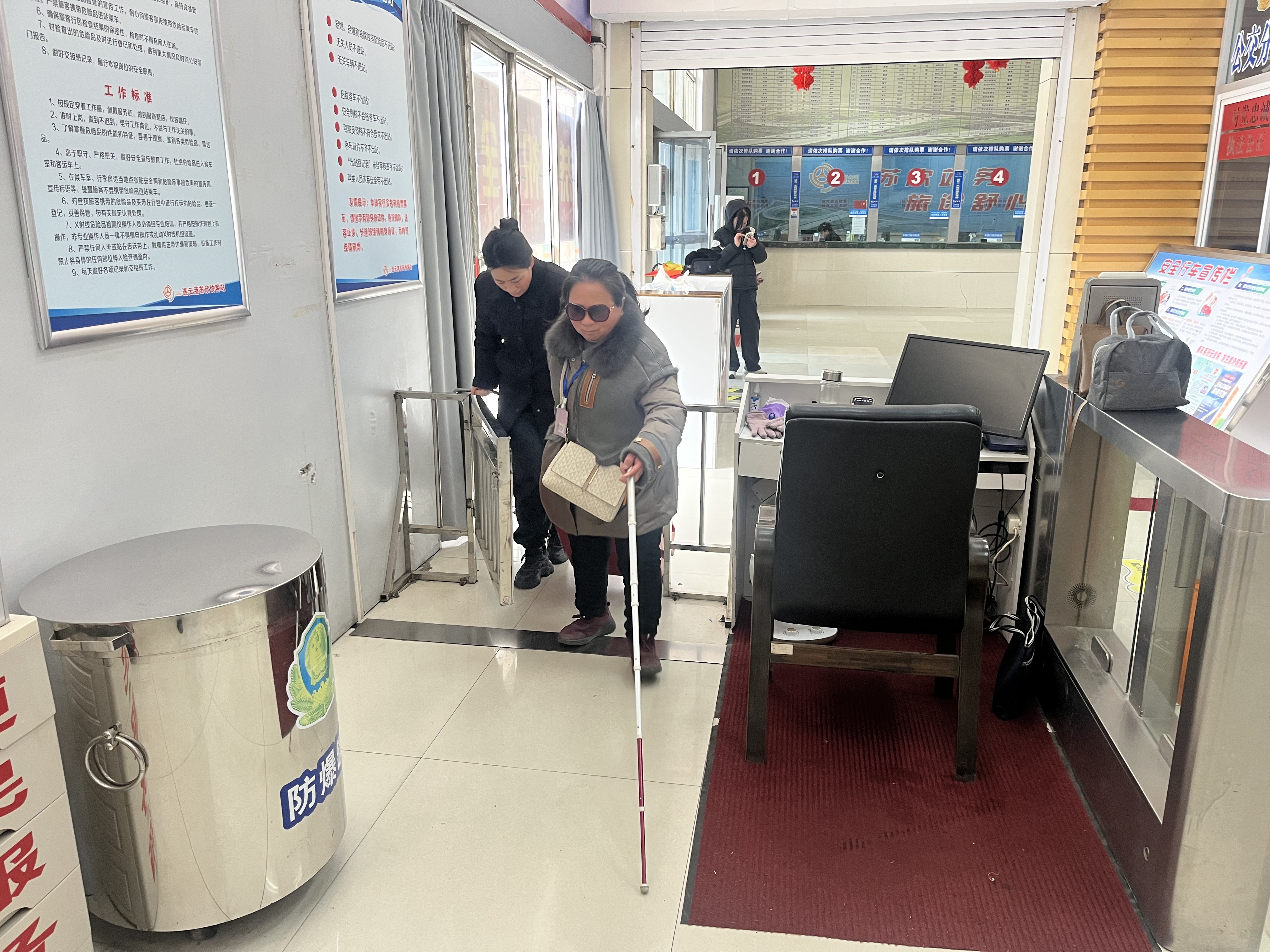 了解详情后,骆青小心搀扶旅客,细心提醒脚下路况,避开障碍物,顺利引导至售票窗口并协助完成购票。随后,骆青又将旅客护送至候车区休息等待,直至发车时间临近,她再次来到候车区,搀扶旅客检票上车,并为其安顿好座位,确认一切妥当后才放心返回工作岗位。临别时,旅客连声道谢,骆青则表示:“这是我们应该做的。”