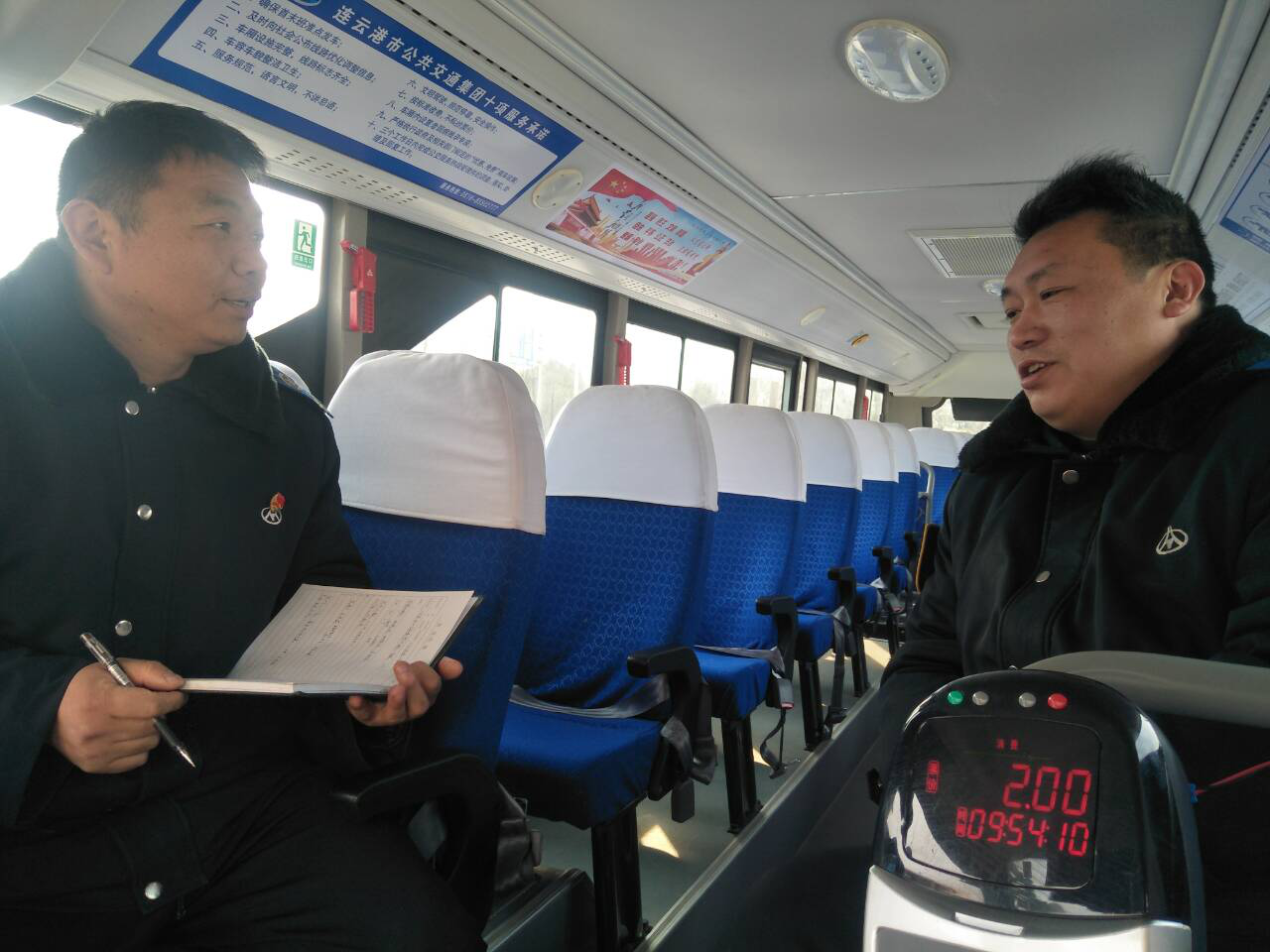 近日,车队长曹海涛在52路和56路终点站,利用驾驶员运营休息时间,进行一对一的基本安全技术指导和思想交流。他强调在2018年春运工作中要思想上同心,目标上同向,行动上同步,以高度负责的态度,振奋精神,扎实工作,自觉把做好春运工作作为落实“不忘初心、牢记使命”的实际行动,作为坚持“人民公交为人民服务”宗旨的责任担当,实现2018年工作“开门红”,确保春运工作圆满完成。