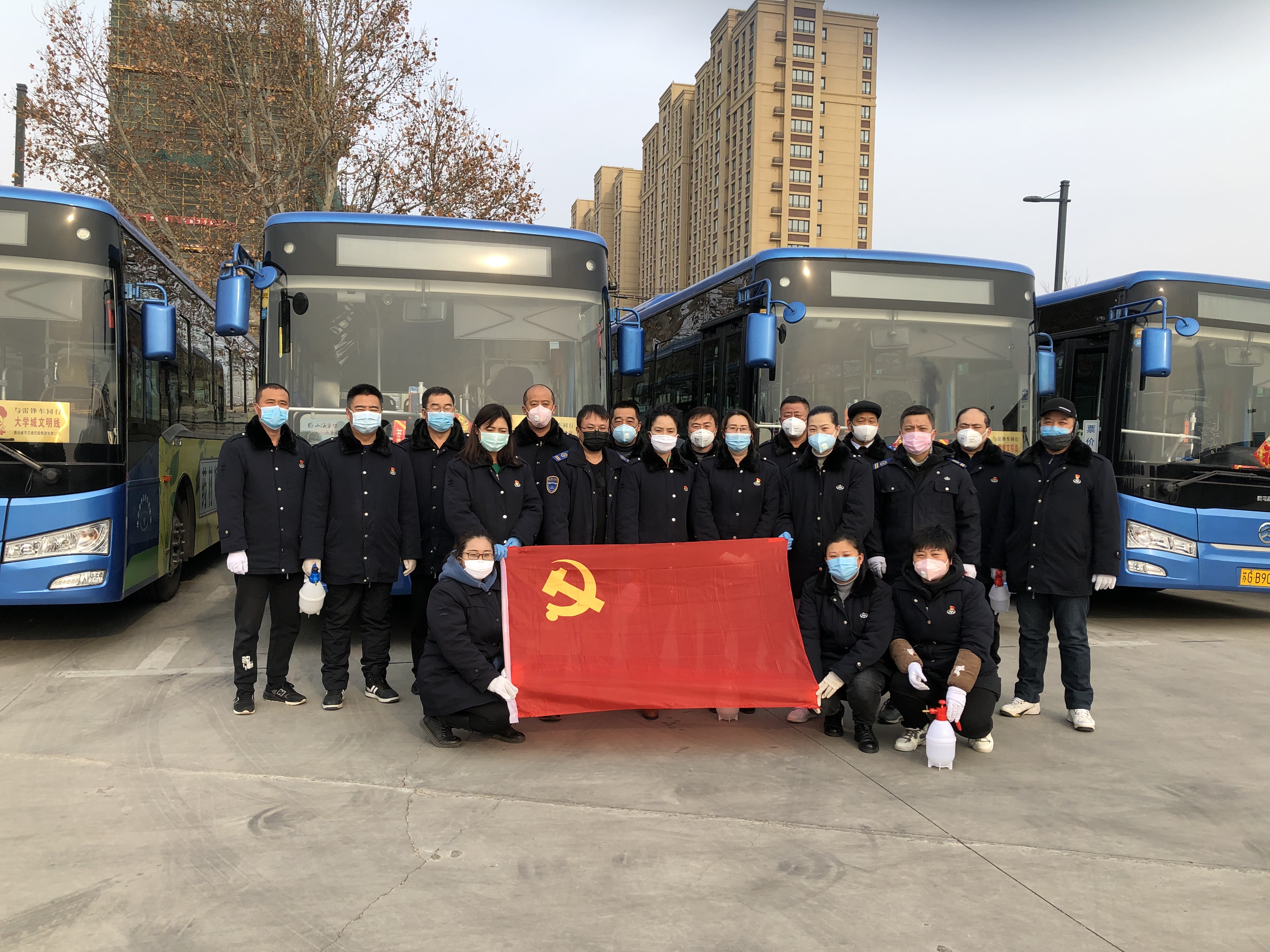 “带上党旗,同志们我们开始行动”。2月2日,在支部书记王有利的号召下,党员同志戴上口罩、手套,个子高的同志主动背起消毒器,女同志拿起消毒喷雾,大家不畏疫情,不怕困难,仔细对场站的每一台车辆、充电棚、茶水房等角落进行全面消毒,同时对每一处消毒点的物资及防疫宣传张贴材料进行反复检查。为更大范围的进行防疫宣传,志愿者自发将防疫知识向朋友圈进行转载,希望通过自己的微薄力量让更多的人了解知识,向社会传递正力量。