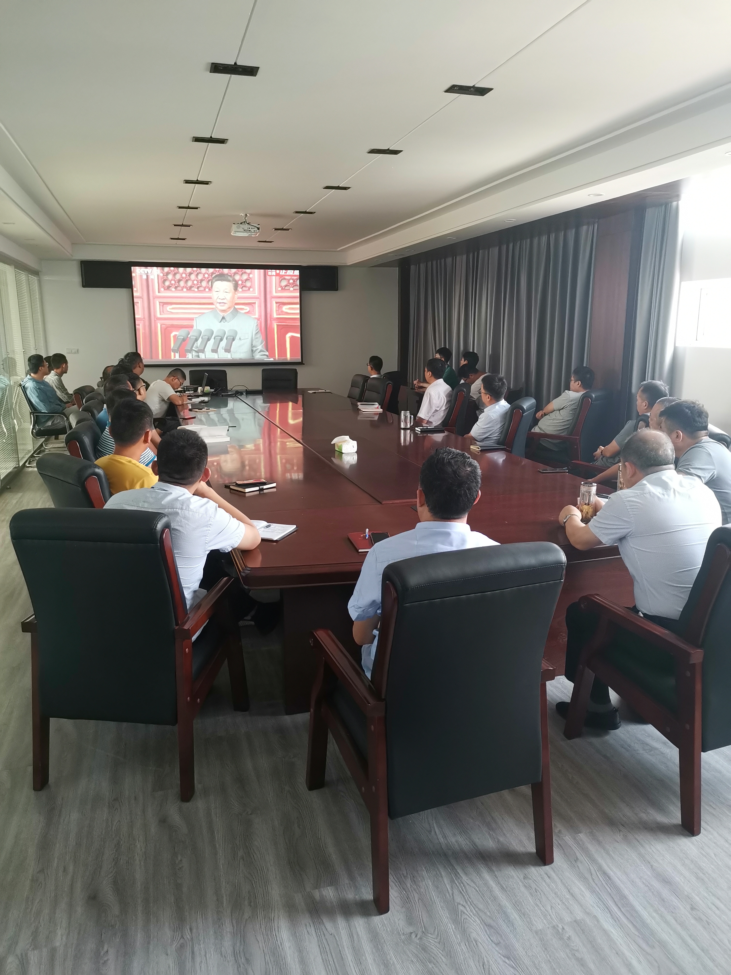 7月1日上午8点,江苏海建通仁分公司党总支全体党员、职工代表30余人集中收看了中国共产党成立100周年庆典直播。
