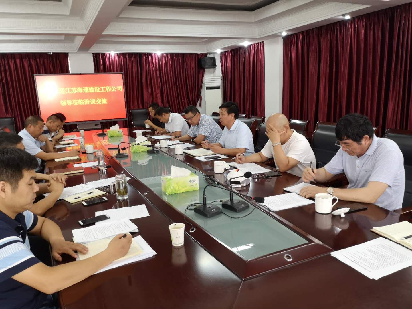 7月15日下午,海建公司董事长、党委书记仲济强,经理助理邵巍带领相关人员前往建工集团洽商板桥产业园项目推进工作,建工集团董事长李坚等热情接待。