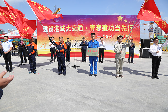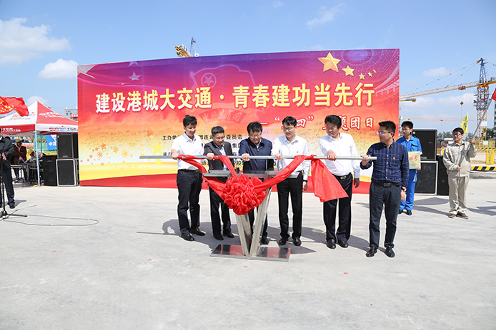 5月3日上午,在"五四青年节"来临之际,共青团连云港市委、交通控股集团在铁路综合客运枢纽建设现场开展了"建设港城大交通,青春建功当先行"五四主题团日活动,动员全体青年建设者传承五四运动光荣传统,展现交通建设行业青年朝气蓬勃、奋发进取的精神风貌,凝聚青年建设者积极投身于港城交通基础设施建设,不断拼搏进取、创造新的业绩。此次五四主题团日活动,也标志着"连云港市交通重点工程青年立功竞赛活动"全面启动。