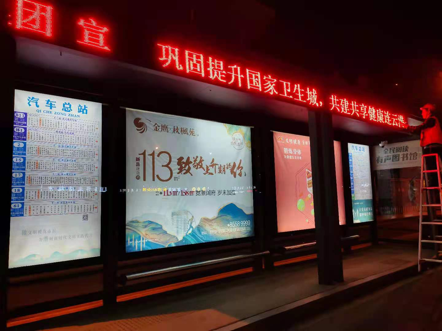 近日,交通集团充分利用自身媒体资源,在市区主要路段的400余个公交站亭的LED条屏投放宣传标语,基本覆盖了市区及连云区主要道路。宣传条屏每晚循环播放上万余次,有效强化了对我市卫生城市常态化建设工作的宣传力度。