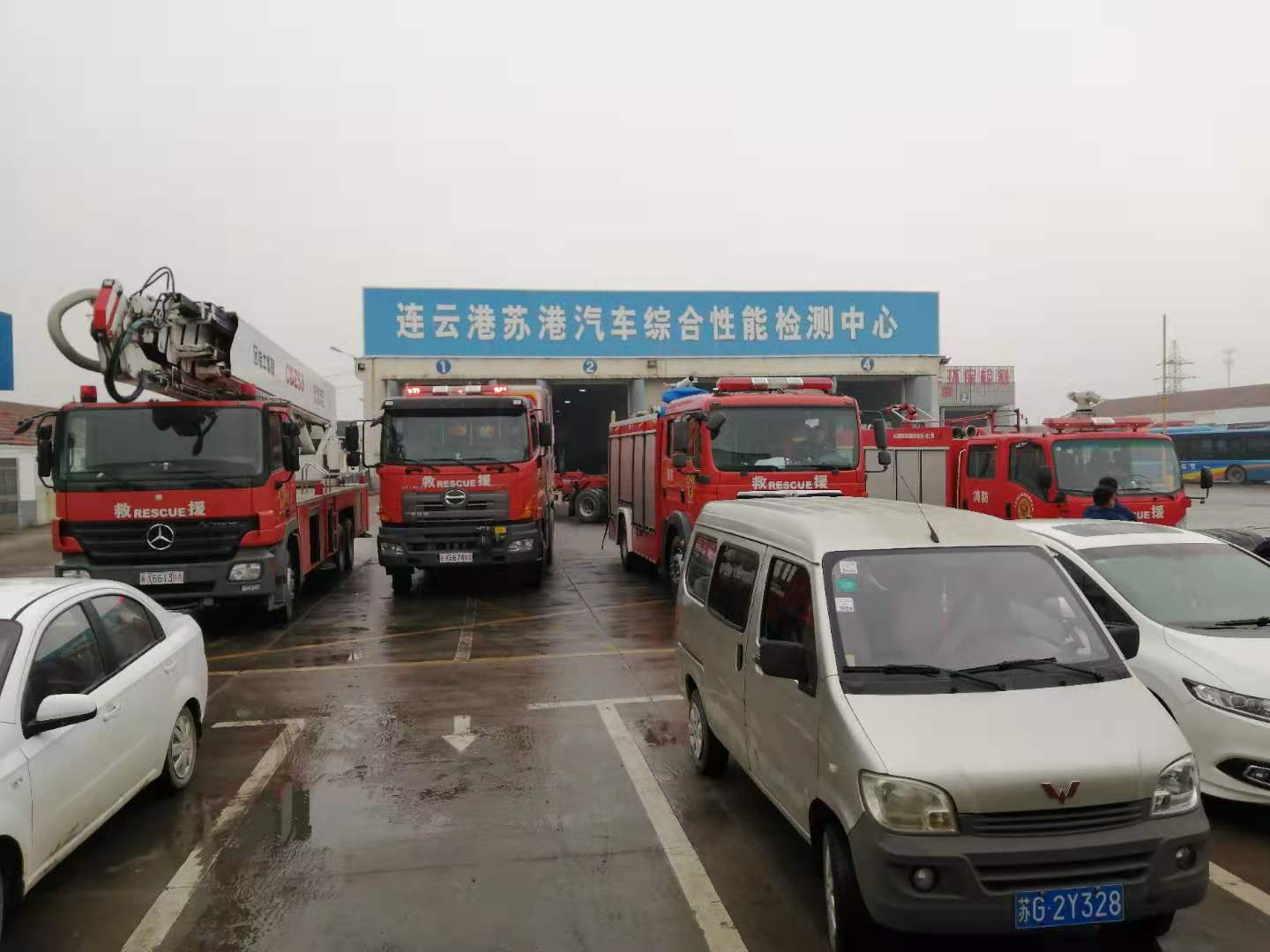 12月2日,市消防支队50辆消防车来到苏港检测中心进行车辆检测业务。