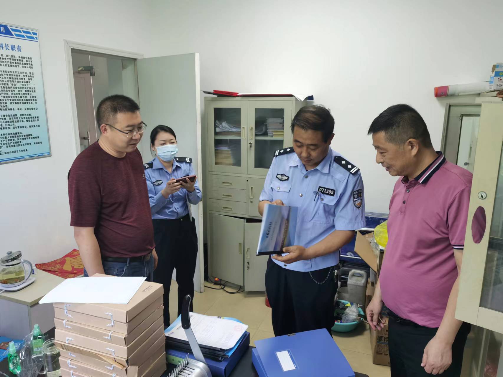 6月27日,市海州区交警一大队一行对连汽翔安公司夏季安全生产工作进行了检查,翔安公司副总经理许安庆(主持)、党支部书记吕海波及安机科人员参加检查。