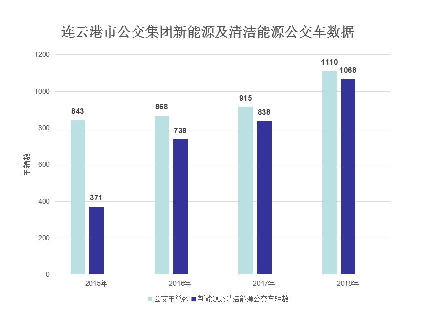 2015年起,连云港市交通控股集团公交集团加快车辆更新步伐,先后购入了1068辆环保公交车(清洁能源公交车371辆,新能源纯电动公交车697辆),淘汰下线黄标车辆566台,年替代柴油量15988吨,减少二氧化碳排放4.86万吨,节能减排效果明显,新能源以及清洁能源公交车辆占比居全省之首。