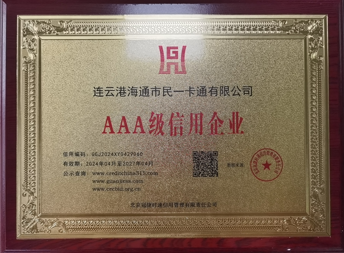 近日,市民卡公司荣获AAA信用企业资质证书,彰显了公司在财务管理、市场运营、社会责任及客户服务等领域的卓越成就,也体现了对社会信用体系建设的积极贡献。
