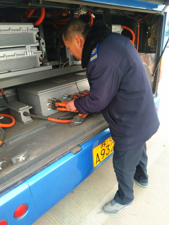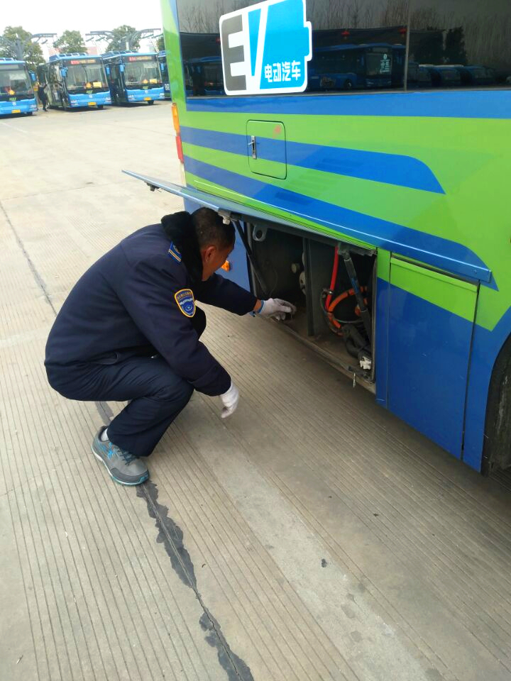 本次检查工作由公交集团快速公司机务科科长郁波牵头组织并带领机务分管人员配合协助。此次检查工作以达到“净化发动机舱及电瓶仓,消除潜在隐患”为目标任务,检查工作内容主要有以下5点:1、发动机机舱内无尘土、无油污、无水垢、无杂物、无线路乱搭接现象,严禁用水冲洗发动机。2、发动机体无漏水、漏油、甩油现象。3、车厢内灭火设备齐全、稳固、安全有效,卫生情况良好。4、清扫纯电动车电瓶仓积尘和水箱滤网。5、车辆检查做到有记录台账。
