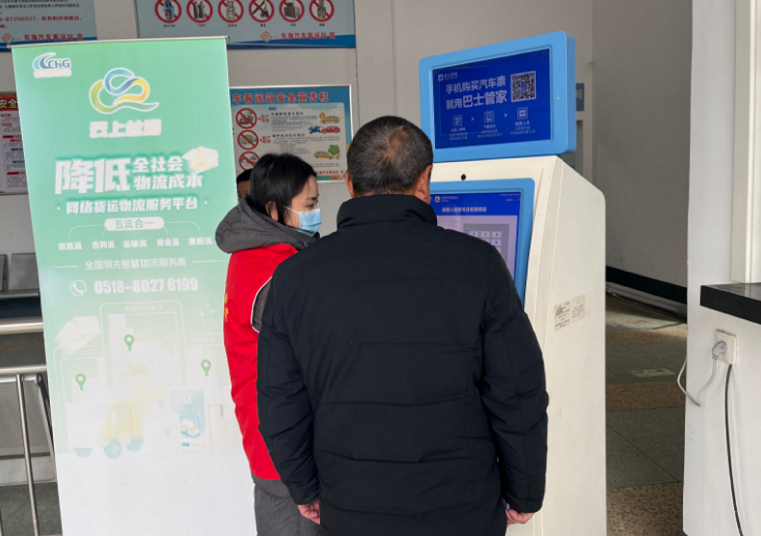 客运站提前研判客流趋势,合理部署志愿岗位,活动中,志愿者们身着红马甲,坚守在进站口、自助取票区、候车室等关键点位,主动为旅客提供帮助。他们耐心指导旅客操作自助购票、取票设备,细致解答车次、检票口、换乘路线等问询,主动帮扶老弱病残孕及携带大件行李的特殊旅客,全程陪同引导,助力其顺利进站、安检、登车。