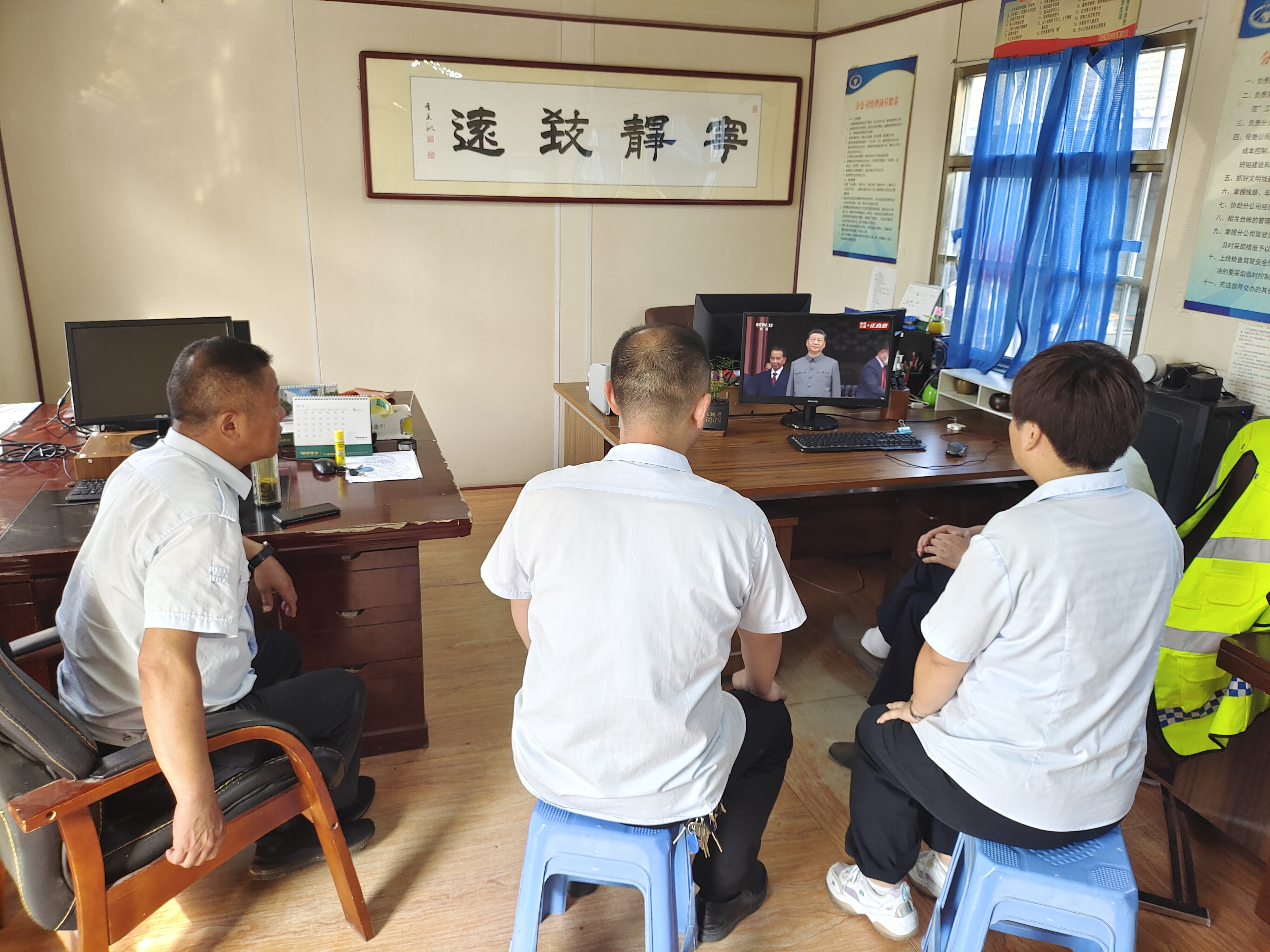 快速公交事业部支部党员、入党积极分子、递交入党申请书人员以及全体管理人员参加收看庆祝中国共产党成立100周年大会,分别在海州客运站四楼监控中心、东城分公司办公室及西城分公司办公室集中收看。
