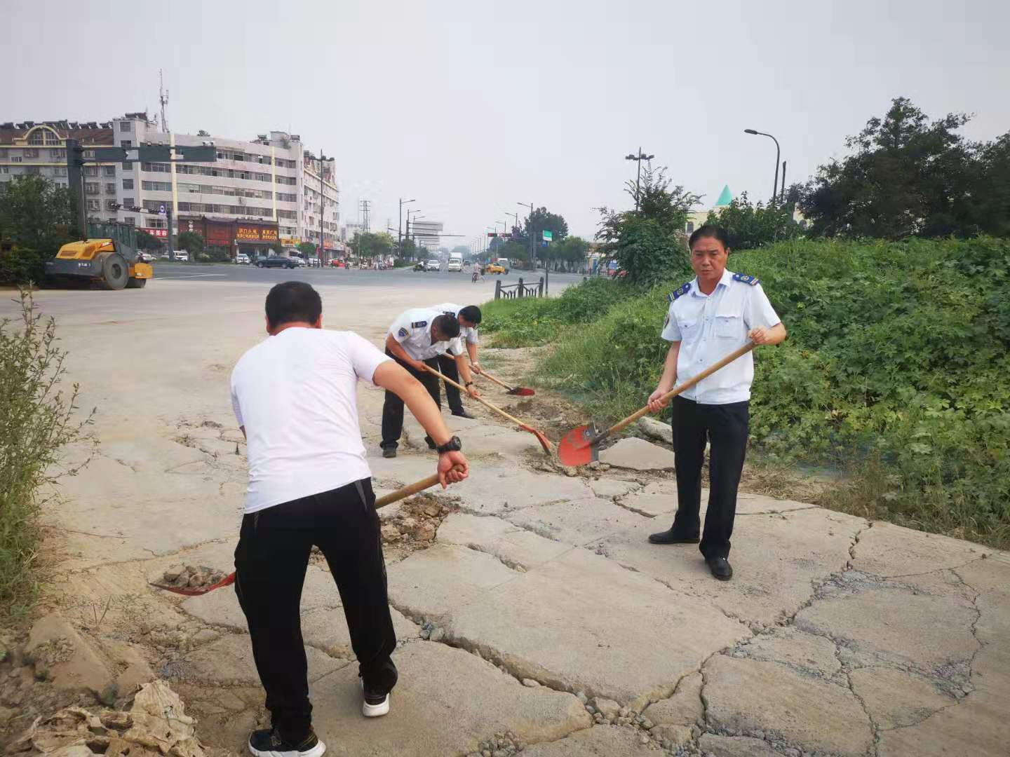江化北路停车场内每天出入公交车辆达数百台次,近日,由于天气连续高温和暴雨的冲刷,导致场站出口处部分路面出现坑槽、沉陷等状况,对出入公交车辆底盘造成严重安全隐患,也给上下班员工的通行带来不便。公交集团经营发展事业部佳连分公司经理武传德立刻行动,召集管理人员拿起铁锹扥工具修补破损路面,大家将泥土和沙石填置到低洼损坏的路坑中,为提高效率,有的同志甚至摒弃工具,徒手搬运砖石和石块,不到1小时,坑洼的路面被修复平整。