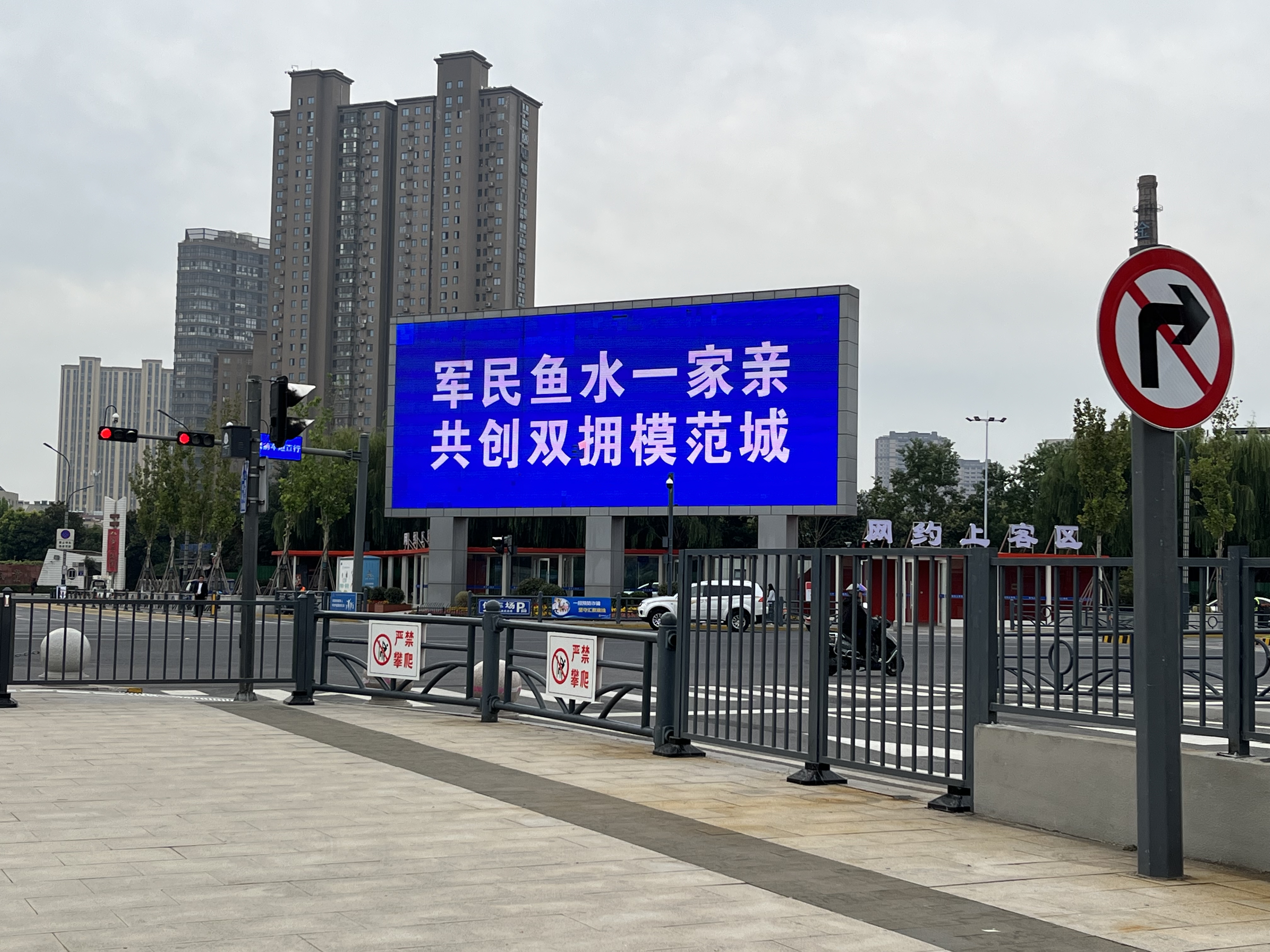 拥军优属,拥政爱民。“双拥”工作的产生与发展,是中国革命建设富有特色的重要内容之一,也是中国革命和建设事业取得胜利的重要保证。为此,交通集团在建国74周年之际,于全市范围内近500座常规公交站亭的LED条屏,以及综合客运枢纽站前广场3座电子大屏(包括1座单立柱电子屏、一座4面电子屏以及高架平台长条屏)上刊了弘扬“双拥”相关宣传标语。