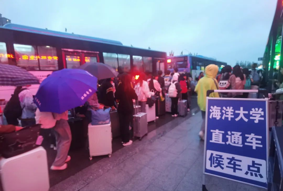 4月28日,大学城师生离校是第一个客流高峰。下午两点多,江苏海洋大学、工贸学校、中等专业学校、师专开始陆续放假,乘车前往高铁站,公交集团管理人员提前到学校门口,根据他们返乡的具体车次提供精准的线路咨询,为他们提供个性化服务,共投入运力18台,发送班次52班,运送学生约2600余人。5月3日假期最后一天,高铁站B区站点瞬间站满返校学生,管理人员冒雨在站点开展现场管理,做好输送乘客服务,开通大学城专线车23台,发送班次79班,直至晚上9点大学生返校客流基本输送完毕,运送学生4000余人。
