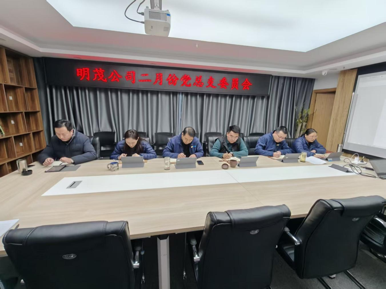 2月10日下午,明茂公司党总支召开二月份党总支委员会。会议由公司党总支书记、董事长袁军同志主持召开。明茂公司领导班子成员参加会议、相关部门负责人列席会议。