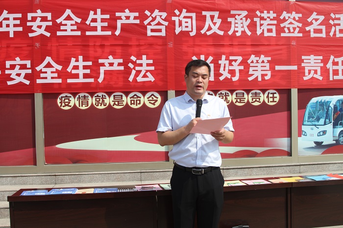 6月16日,汽车公司围绕安全生产月“遵守安全生产法 当好第一责任人”的主题,开展安全生产宣传咨询日暨承诺签名活动。公司党委书记、总经理杨维洲,副总经理、工会主席张春军,总经理助理王平出席,机关全体职工、客运事业部、站务事业部管理人员、雷锋车手参加活动。活动由张春军主持。
