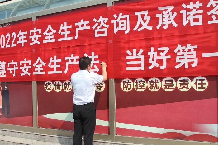 活动现场,公司领导班子及全体职工在“遵守安全生产法 当好第一责任人”宣传横幅上作签名承诺。