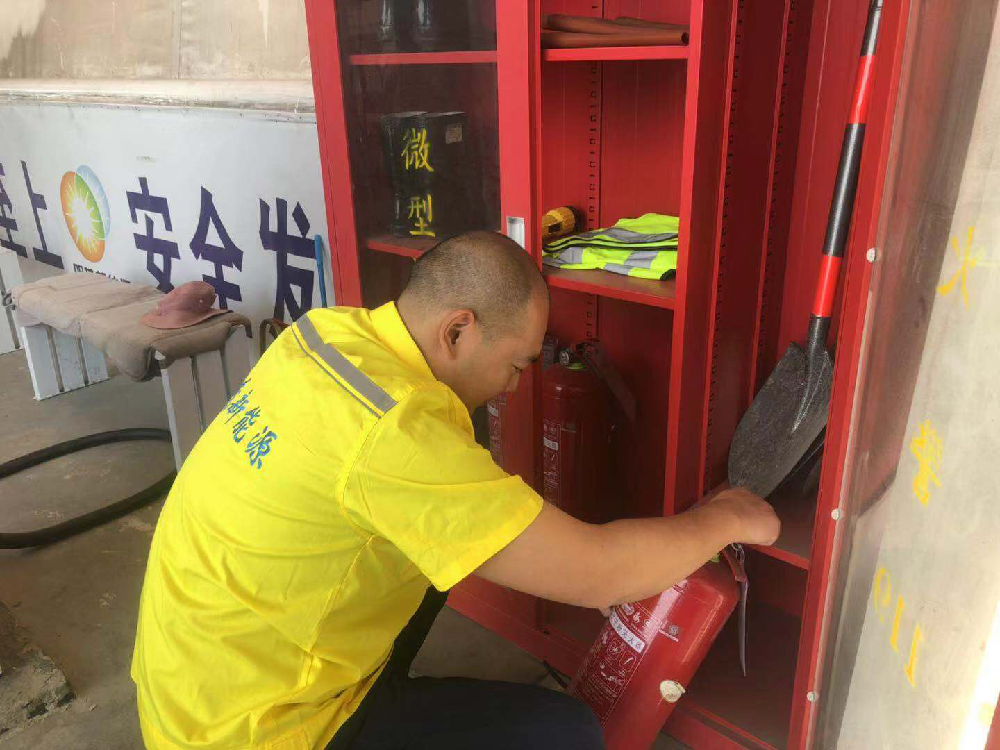 检查中,现场交代了充电人员要做好防暑降温、防晒工作,同时随着新学期的到来,即将迎来人员出行高峰期,充电车辆比往日有所增加,安全充电工作责任重大,充电人员要把安全放在第一位,按照工作日志交接班内容进行“一日三检”工作,确保充电设备安全正常运行,做好纯电动车辆的充电保障工作;运维团队也对充电站消防设施进行检查,重点检查消防沙、消防铲、灭火器是否配备到位,消防沙、消防铲有无缺失,灭火器压力是否正常,喷管有无破损;充电站安全警示标志是否齐全等,确保消防设施齐全有效。