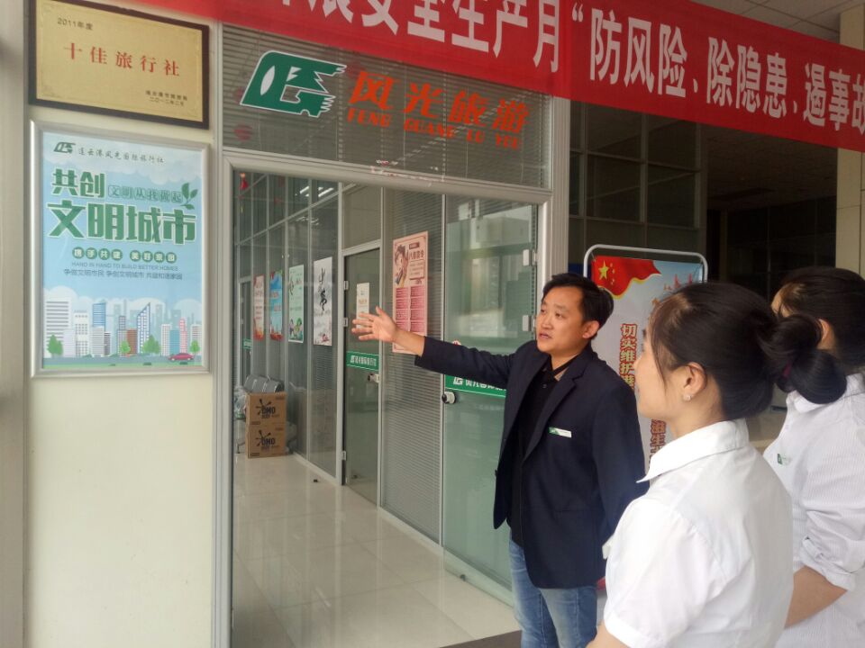 检查组对照创建全国文明城市测评体系和创建标准,针对公司卫生环境、控烟情况、文明旅游标识、公益广告宣传、窗口服务、消防设施、无障碍设施情况及职工工作状态等方面进行了无死角全覆盖式自我检查,并根据旅游局最新创文要求,新增创文标语两块,诚信经营公约一块。