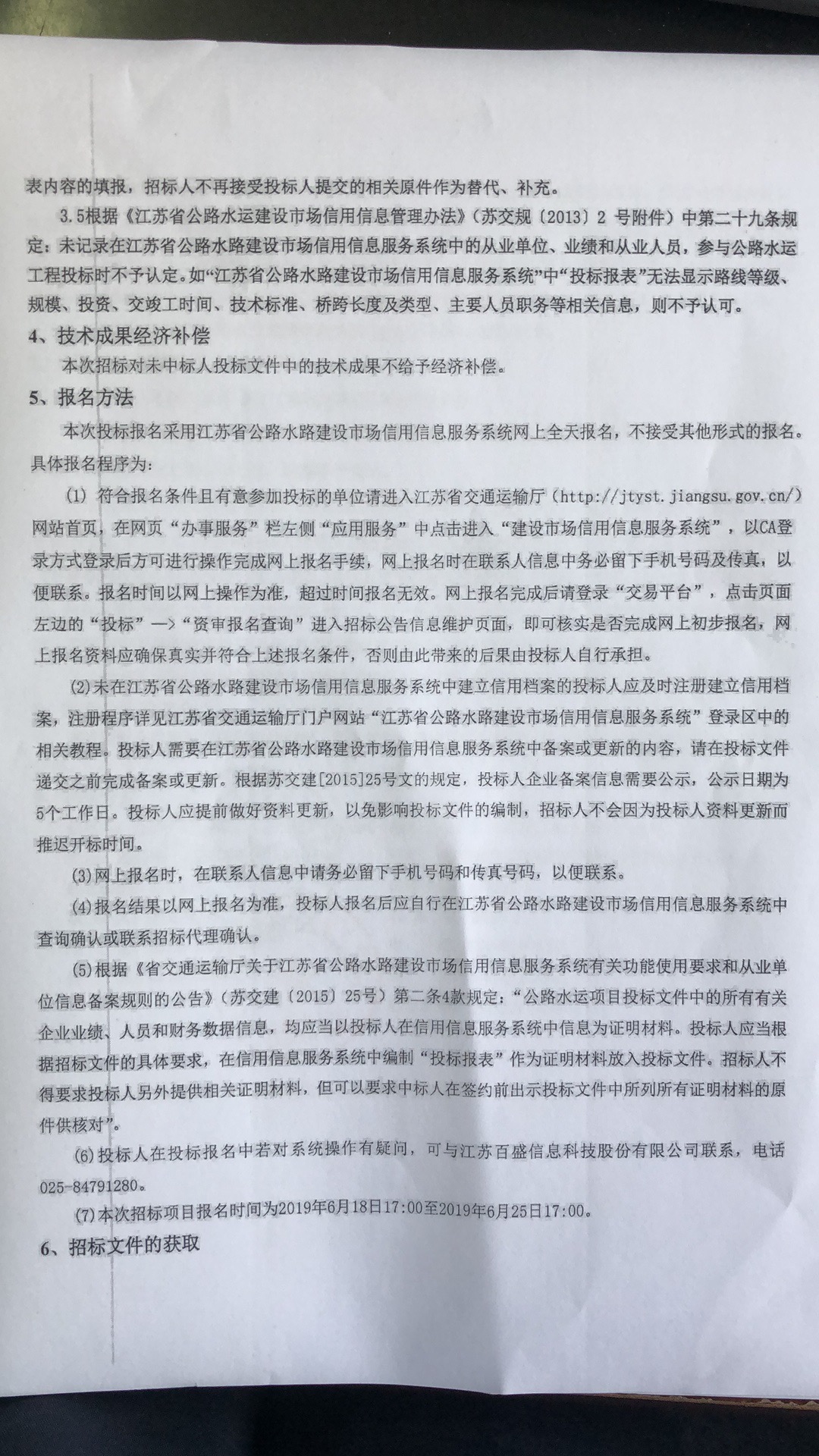 (4)报名结果以网上报名为准,投标人报名后应自行在江苏省公路水路建设市场信用信息服务系统中查询确认或联系招标代理确认。