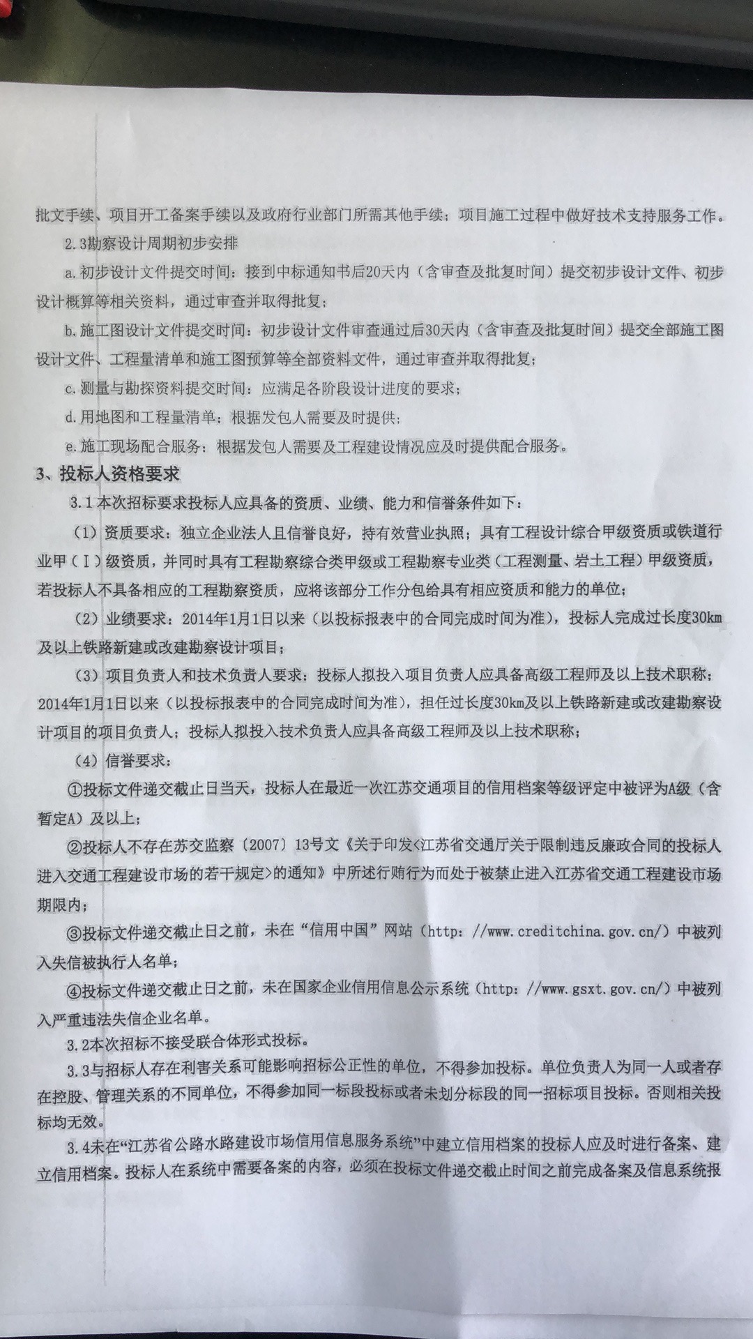 (2)业绩要求:2014年1月1日以来(以投标报表中的合同完成时间为准),投标人完成过长度30km及以上铁路新建或改建勘察设计项目;