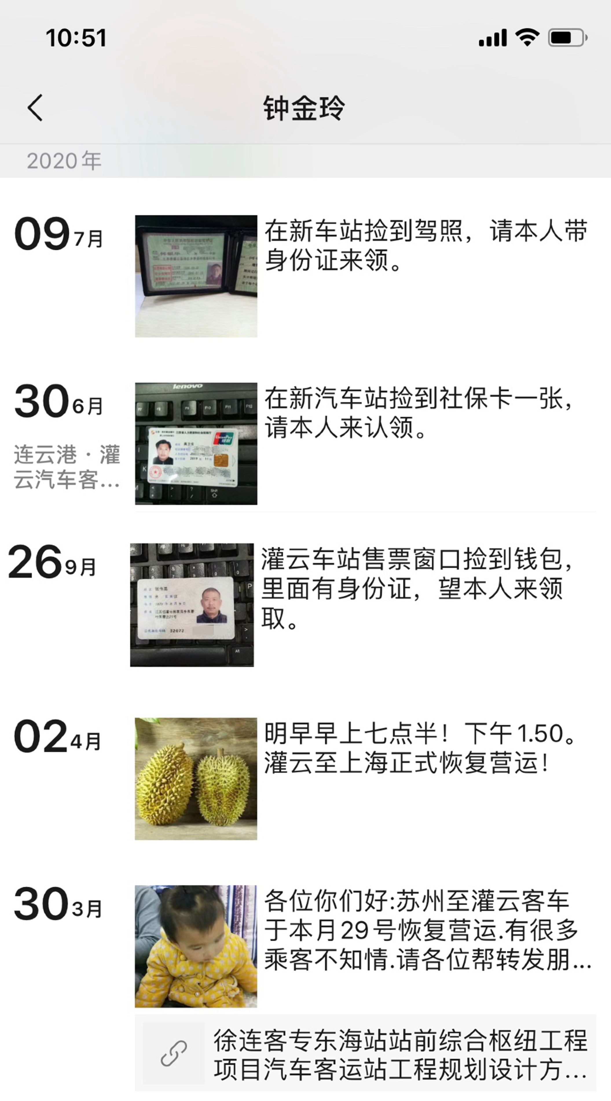 微信朋友圈,大家总是会发一些生活娱乐相关的动态,而钟金玲的朋友圈,更多的是失物招领。作为售票员的她,每天接触到南来北往的旅客,遇到过不少马大哈,而通过她的朋友圈领回自己失物的旅客也有很多。身份证、银行卡、社保卡、驾照…为此,她还有了个外号——“捡卡大神”。