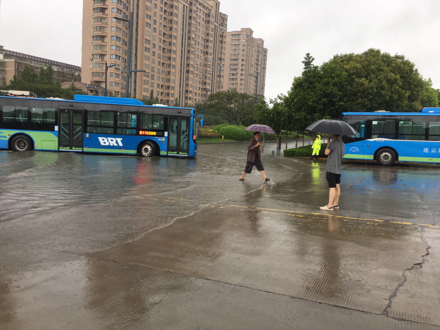 针对市气象局发布的雷暴橙色预警信号,预计连云港7月11夜里到12日我市将有一次强降水天气过程,累计雨量可达到暴雨,局部大暴雨,局部地区伴有短时强降水等强对流天气。雨情就是命令,快速公交事业部领导班子及相关部门积极应对、靠前指挥,立即按照特殊天气启动应急预案,快速公交人迅速行动起来, 管理人员到源头站点,场站指挥发车,到受淹场站及时排水,在积水严重路段安排观察哨、安全岗,确保线路安全运行。全体员工众志成城,全力以赴确保快速公交运营生产,为广大市民出行保驾护航!