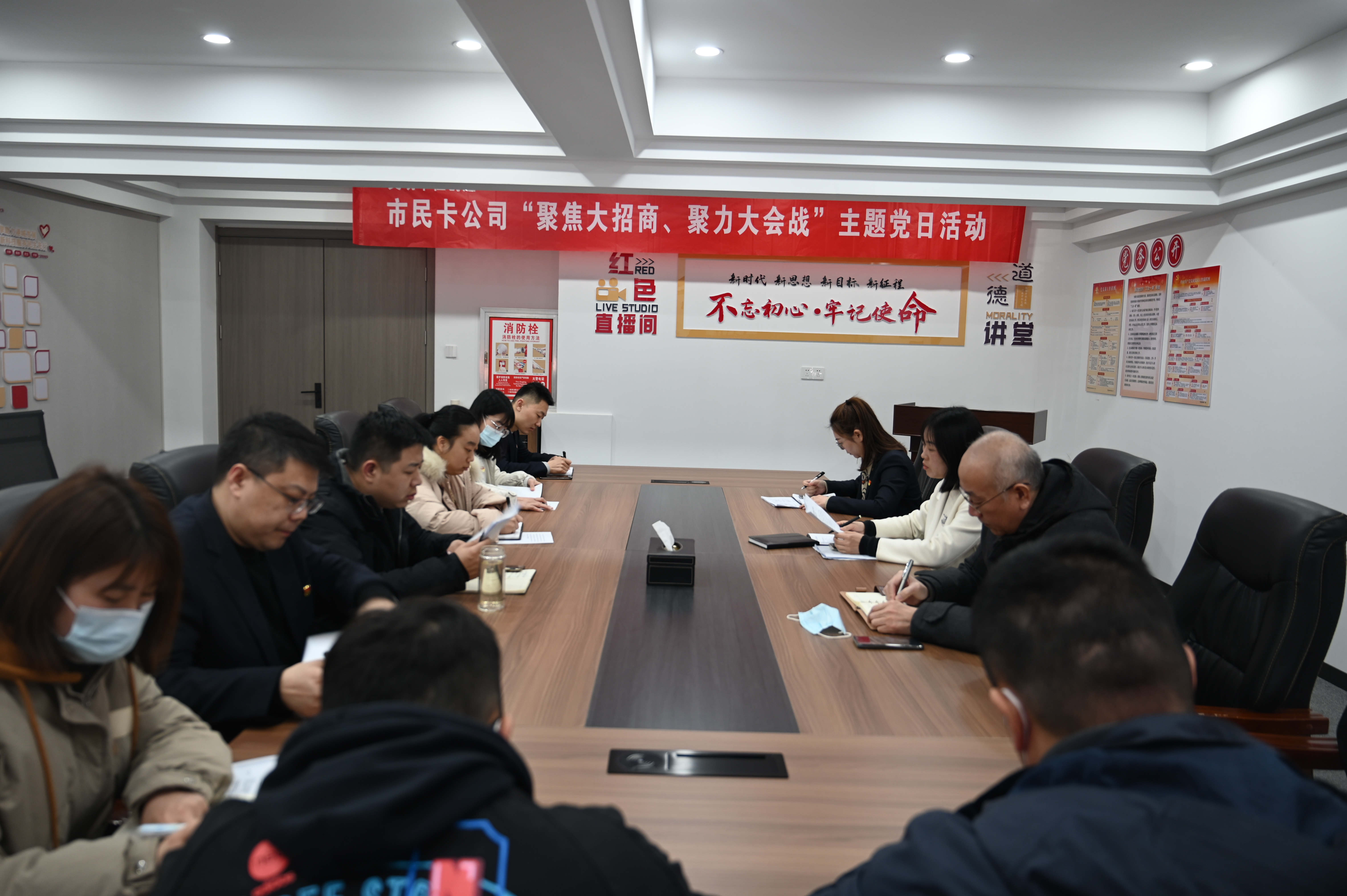 为深入学习贯彻党的二十大精神,把党员干部的思想、行动统一到市委“招商引资、项目建设大会战”的部署上来。2月27日上午,市民卡公司党支部组织开展“聚焦大招商、聚力大会战”主题党日活动,公司领导班子成员、全体党员参加活动。
