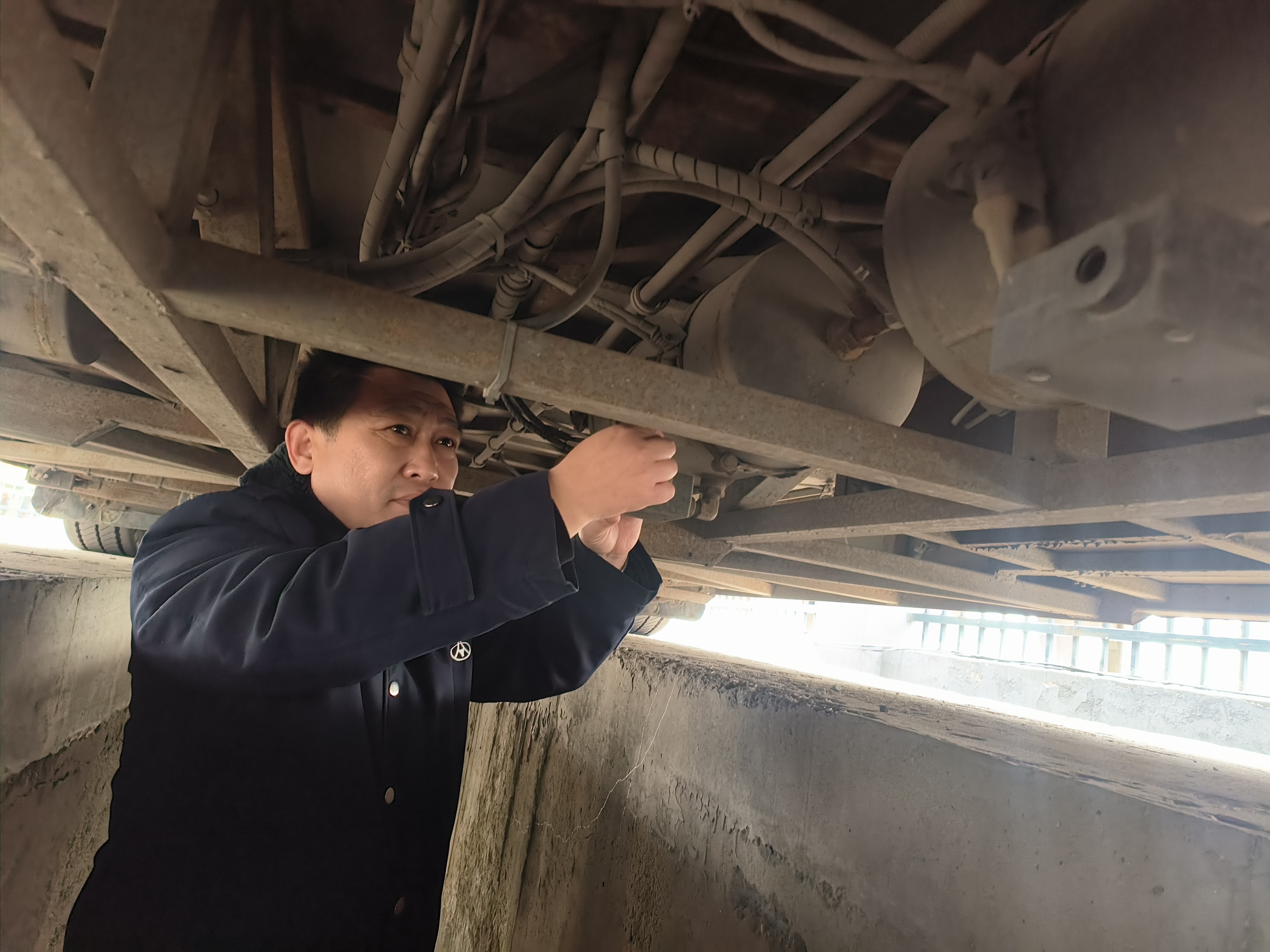 检查小组对灭火器、安全锤、空调、电路、油路、灯光、转向、制动装置、胎压、发动机舱电池舱等进行了全面细致的检查;重点检查储气筒有无积水和排气开关是否正常、空调压缩机是否正常工作、空调滤网是否已清洗。检查过程中,检查小组秉持“严要求、细排查、重落实”的原则,对每一辆车辆都不放过任何细节,针对检查中发现的各类问题,检查小组通过微信群进行通报情况,并要求送往修理厂进行更换,确保问题得到及时解决。