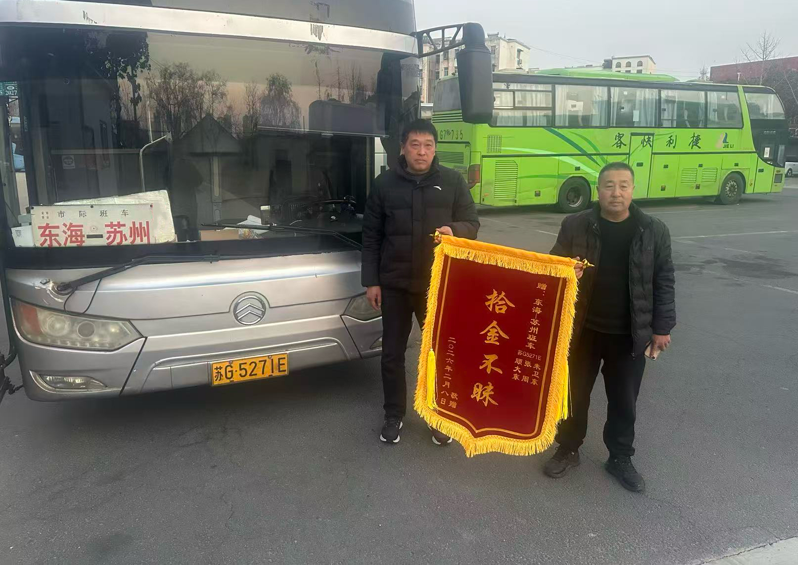 近日,苏G5271E苏州至东海客运班车完成当日运营任务后,驾驶员朱卫东、张周、乘务员顾大东三位师傅像往常一样开展收车清扫工作,正当他们仔细擦拭车厢、整理座椅时,意外在座位旁发现了一个遗落的提包,打开查看后,里面的财物让三位师傅心头一紧,现金与贵重首饰整齐摆放,他们当即意识到,这一定是某位乘客匆忙下车时不慎遗落的。
