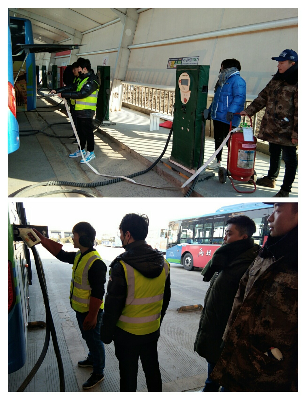检查组来到车辆充电区了解车辆充电情况,在车辆充电现场传达了公司对各条战线在春运期间的工作要求,要求每个人都必须要树立安全大于天的思想,对充电过程中容易出现安全隐患的环节、一定要加强自检自查,并要求每个人都要加强责任意识,要严格落实安全生产管理制度和充电桩的操作规程,杜绝任何安全隐患,要营造一个安全的工作环境。检查组还认真检查了消防设施、设备的配备情况,查看了灭火器是否存在过期情况,并且现场培训充电工如何正确使用灭火器。