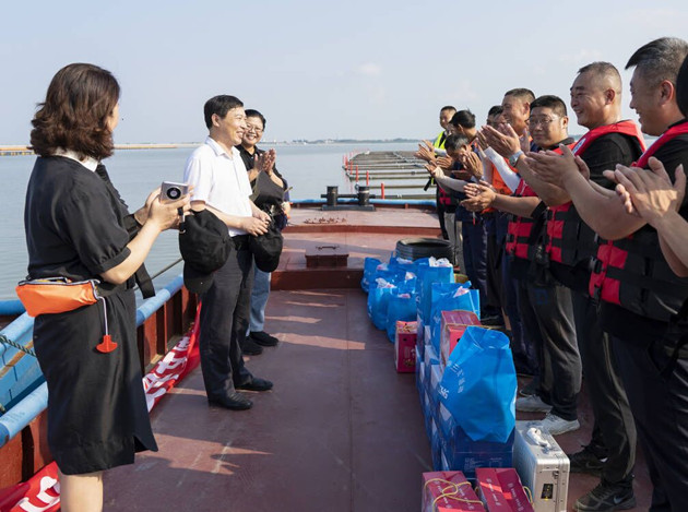 近日,集团开展2022年夏季安康“三送”(送清凉、送安全、送法律)活动,集团总经理仲伟涛,党委副书记、工会主席陈金师一行先后来到西城公交总站、新浦汽车总站、市区道路养护分公司猴嘴工区、石梁河采砂项目部、海陵湖养殖公司等一线场所,看望慰问奋战在高温下的一线职工,为他们送去矿泉水、洗漱套装、人丹、风油精、桃子等物品,以及《工会劳动保护工作手册》《如何保障劳动安全》《安全生产法》等安全生产法律书籍。
