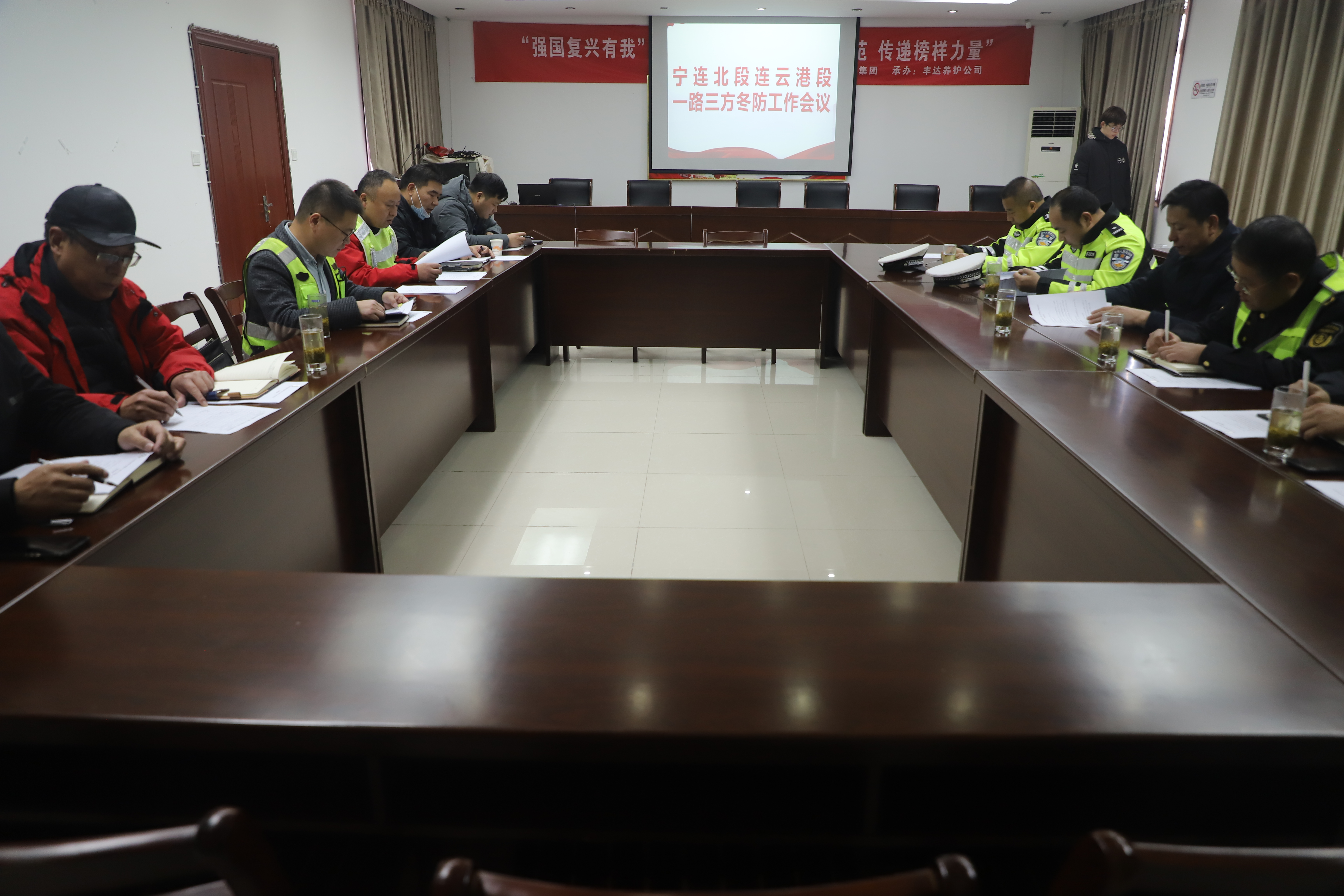 演练前,公司召开了宁连北段连云港段一路三方冬防工作会议,宁连北段管理处、路政、交警、养护施工单位相关领导参加会议。会上,与会各方围绕完善除雪防滑预案展开交流探讨,就除雪防滑工作中的难点问题充分发表意见建议,深入剖析问题根源,共商解决办法。