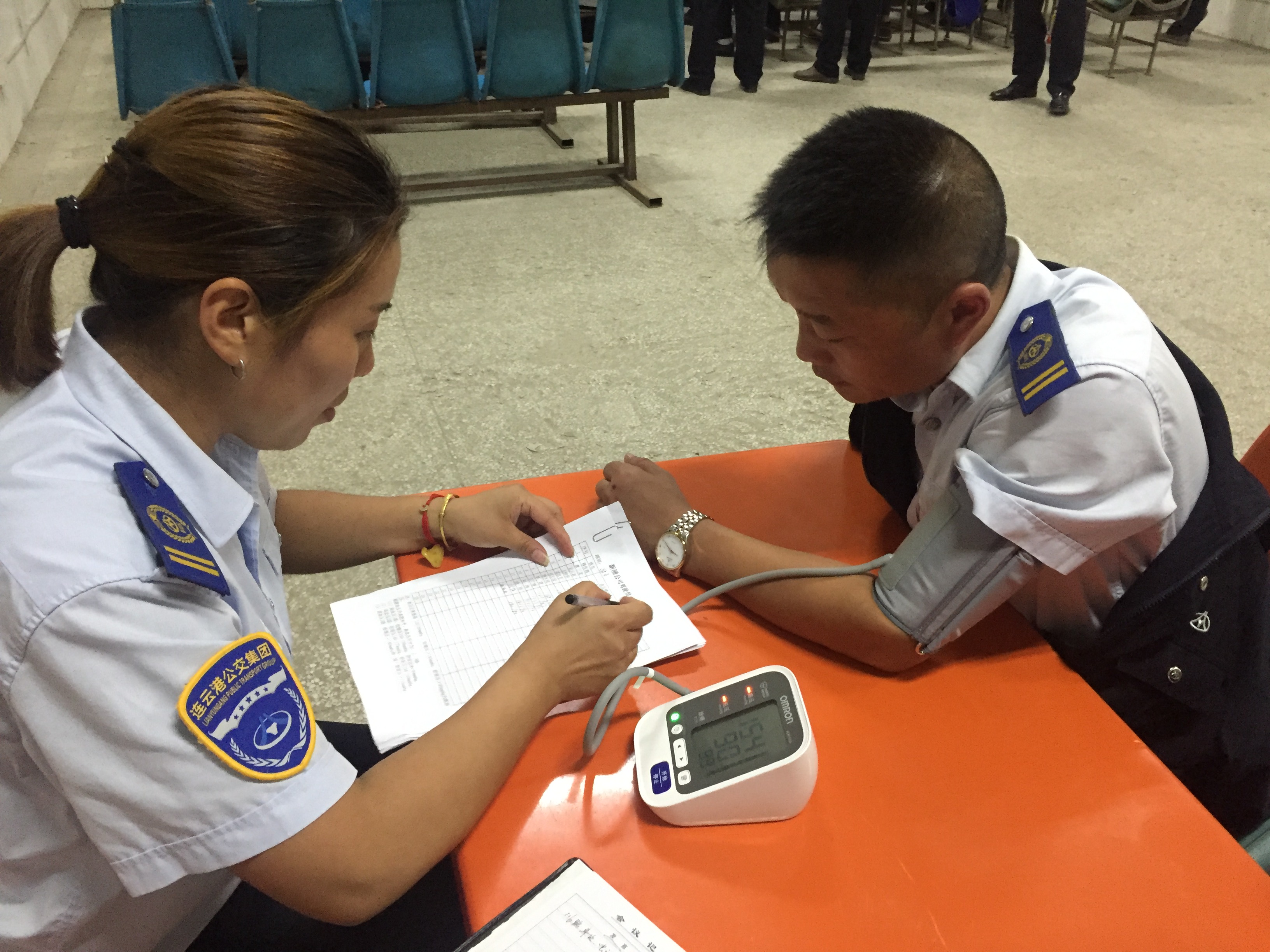 每天,早晨5、6点钟,驾驶员师傅们就要到达工作岗位开始7-8个小时手握方向盘行驶的工作,因为长期坐在驾驶室以及作息时间不规律,不少司机都患有胃病、颈椎病、痔疮,如睡眠质量未得到保障或情绪不稳定还容易导致血压升高,诱发脑梗。在这种情况下,公交新浦公司从提高公交车驾驶员的工作幸福指数出发,启动了驾驶员健康监管体系,为每名驾驶员建立了健康档案,实施动态管理,要求车队人员对营运驾驶员进行血压测量工作,发现有血压不正常的情况,立刻要根据测量结果,判定影响程度,建议驾驶员调休或立即停班进行治疗,不仅要确保车有问题不上路,更要确保人有问题不上车,从而保障乘客的乘车安全。