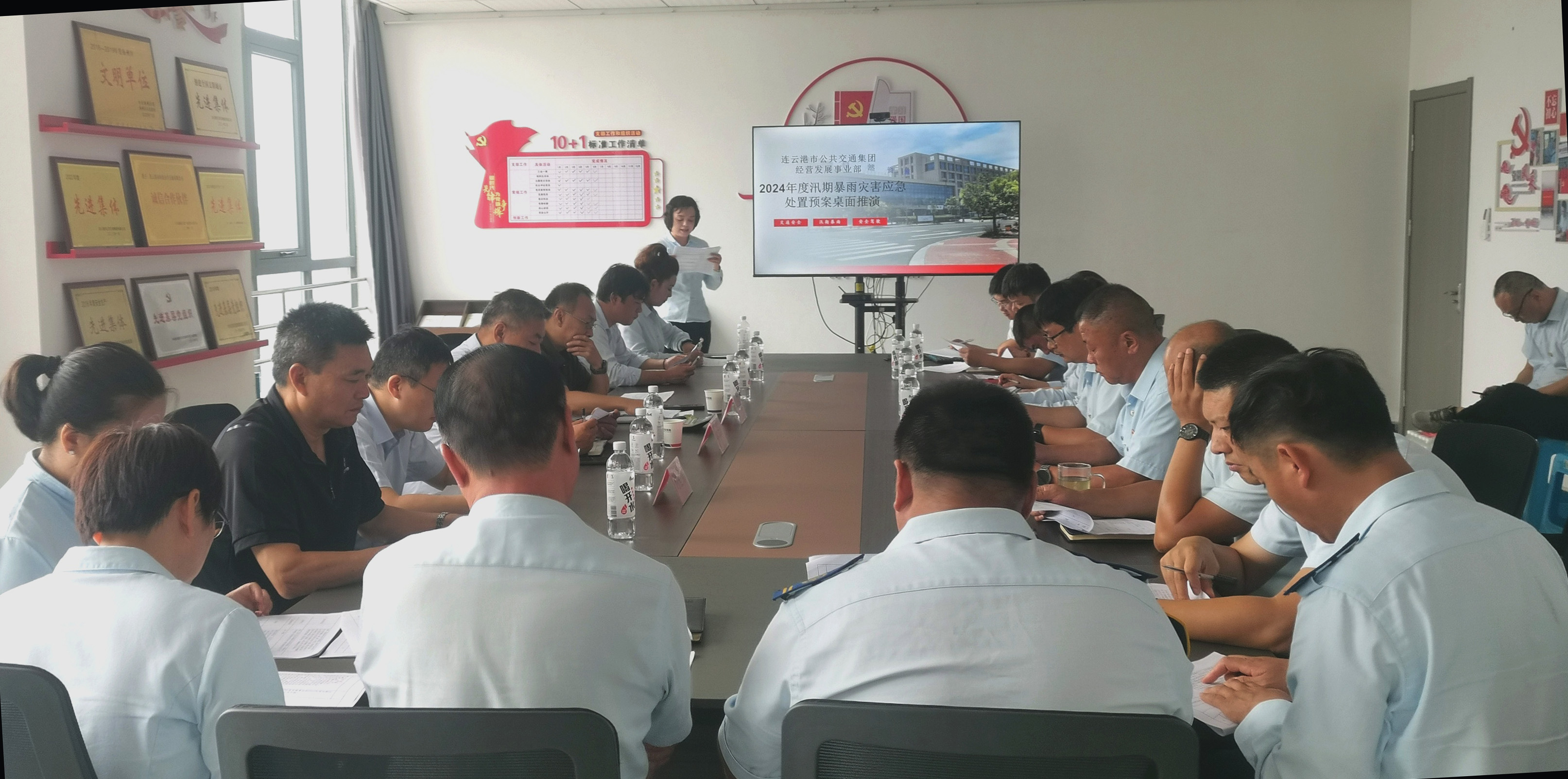 为检验经营发展事业部汛期现场处置方案的合理性、有效性,切实提高事业部应对夏季汛期灾害的快速反应和应急处置能力,增强各科室和人员的安全意识和处置能力。7月19日上午,经营发展事业部开展防汛应急处置桌面推演活动,事业部班子成员、各科室负责人及各线路线长等20余人参加,此外,本次活动还邀请公交集团党委委员、副总经理宋汶洋,安全保卫部部长于亮及各事业部安全分管领导现场观摩指导。