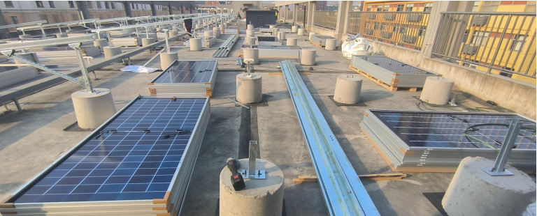 为高质高效推进振兴办公区光伏项目,近期,明茂公司对该项目进行了全面细致的检查,以确保项目按计划顺利推进。目前,该项目已完成防水卷材铺设、混凝土压块安装以及电缆桥架安装等前期工作,为后续施工打好了基础。