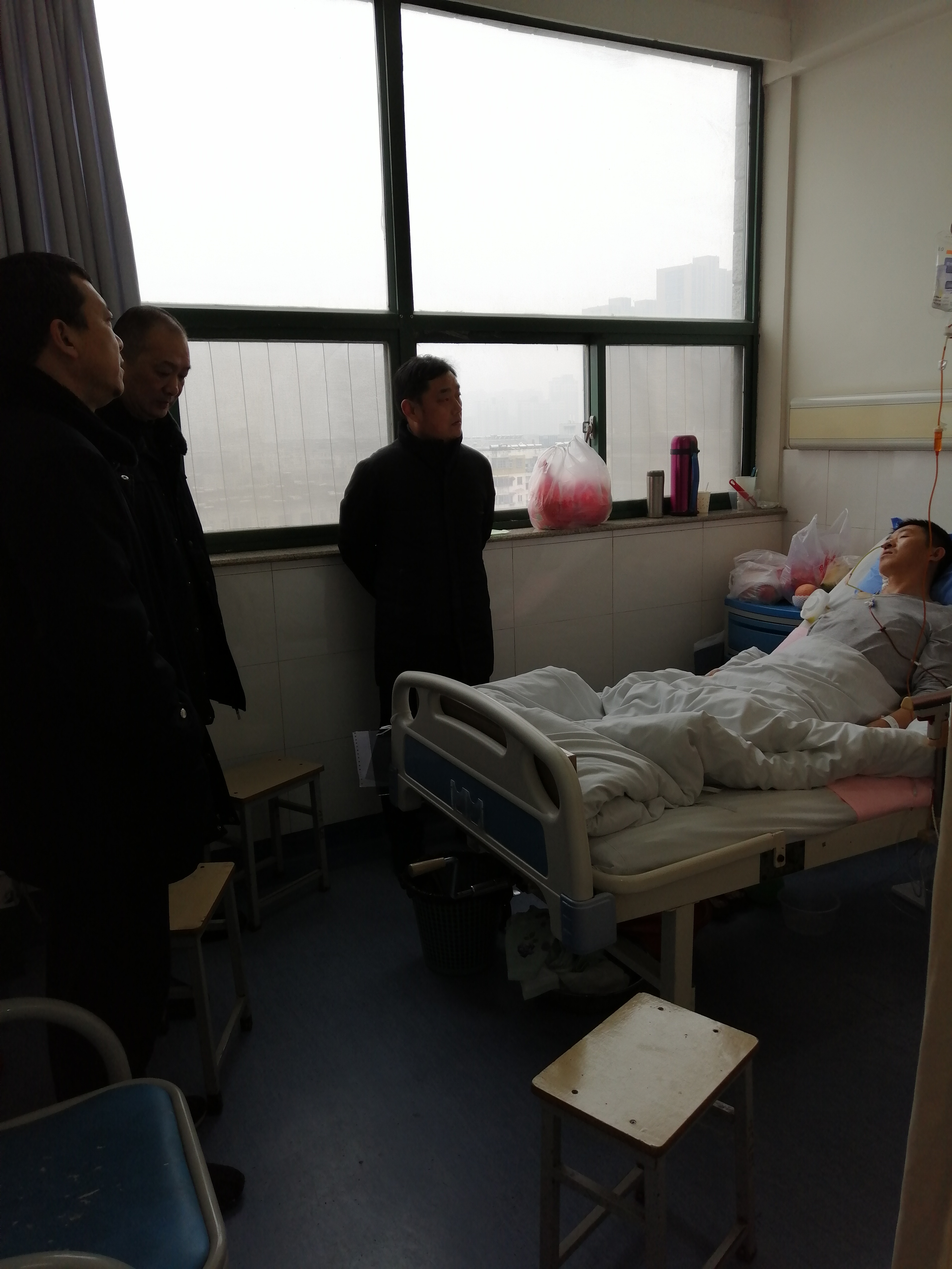 12月21日上午,快客公司经理张新红带领姜永中、王光宇两位副经理及办公室相关人员,来到市中医院探望因交通事故住院的驾驶员徐长春同志,把慰问金和慰问品送到他手中,为他送去公司的关怀和温暖。